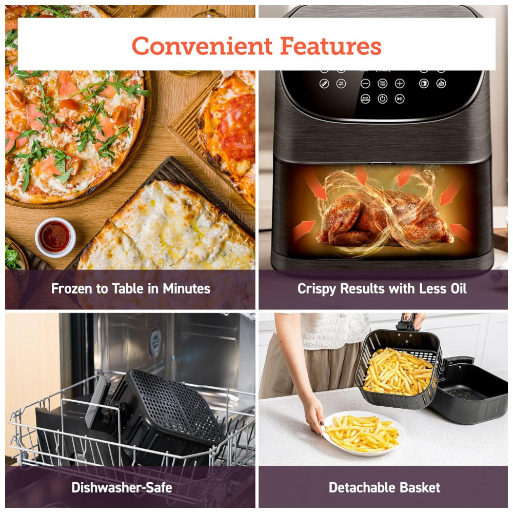 Refeições Mais Saudáveis: Cozinhe refeições mais rápido do que em um forno tradicional, reduzindo o teor de óleo em até 85% em comparação com refeições fritas tradicionalmente, obtendo texturas crocantes sem os inconvenientes para a saúde.