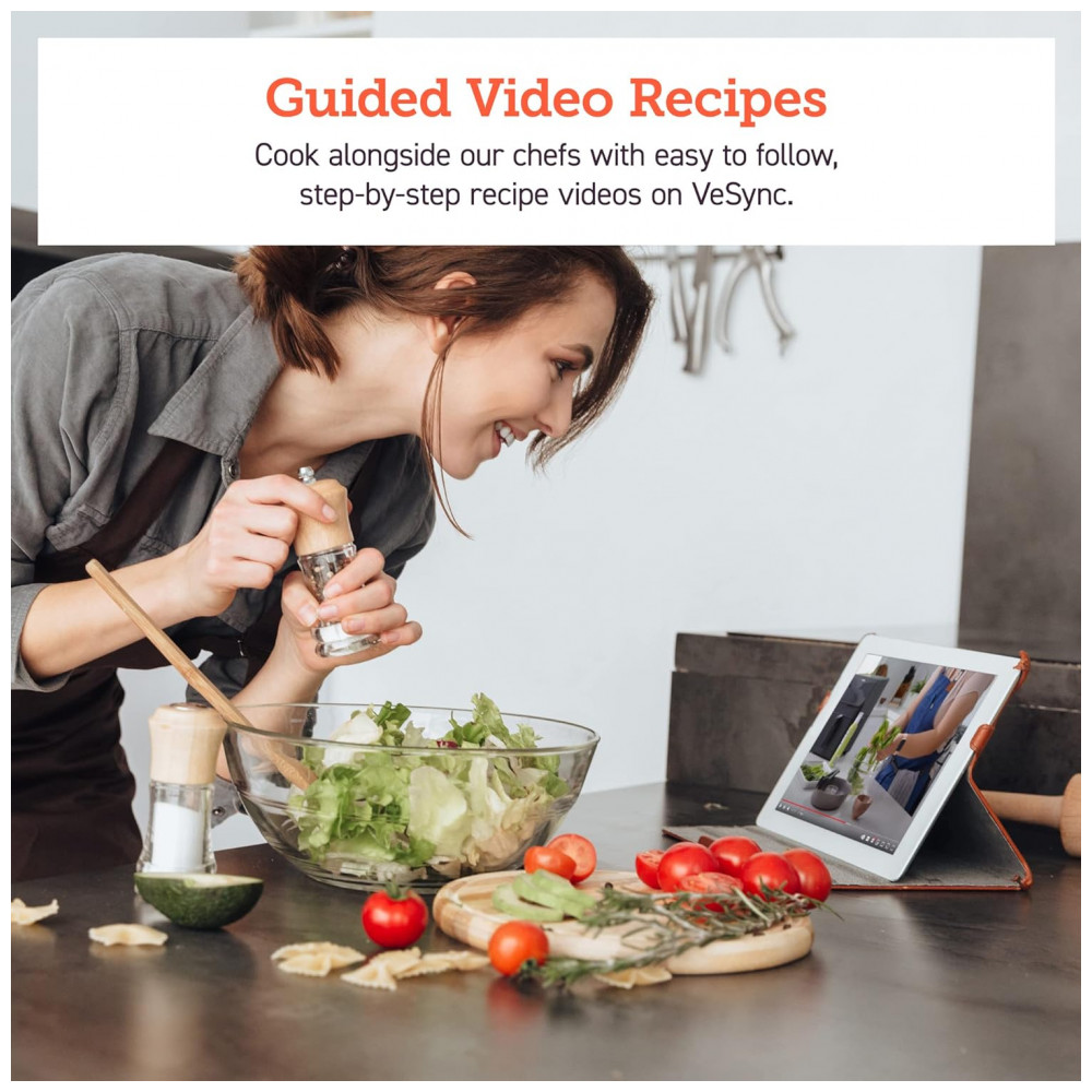 Inspiração Culinária Infinita: Nossos chefs estão constantemente adicionando receitas originais passo a passo ao aplicativo VeSync, oferecendo ideias sem fim. Assista a vídeos guiados de receitas ou até mesmo salve suas próprias receitas para uso futuro.