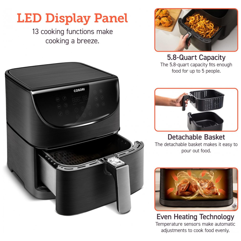AirFryer 11 em 1 com 5.5 Litros de Capacidade e Controle por APP e Painel Digital COSORI 110V 1700W Preto