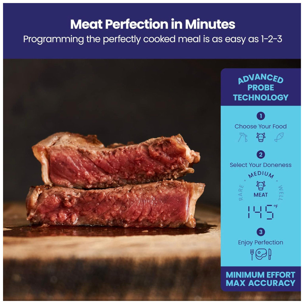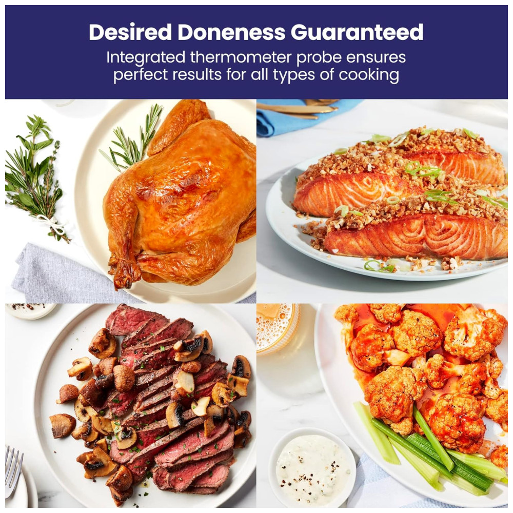 SONDA PERFEITA: Esta airfryer grande inclui uma sonda de temperatura integrada e removível, com tecnologia avançada que cozinha frango, peixe e carne no ponto ideal, com atualizações de temperatura em tempo real na tela digital. Também oferece predefinições para uso sem a sonda!