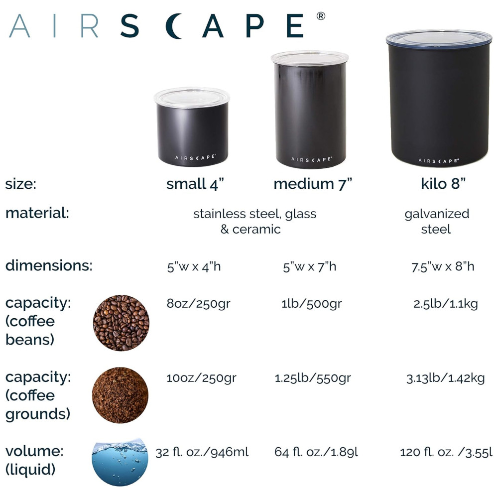 RESISTENTE E EMPILHÁVEL Um tamanho perfeito para a bancada da cozinha ou fácil de empilhar para zenamento compacto na despensa. O recipiente médio Airscape contém aproximadamente 1 lb 500 gramas de café em grão