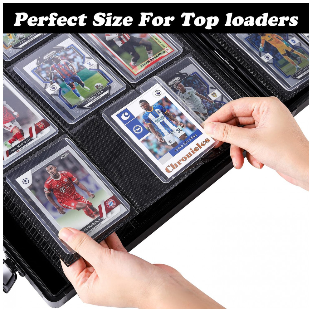 Configuração dos bolsos: 9 bolsos por página para toploaders de aproximadamente 7,6 cm x 10,2 cm