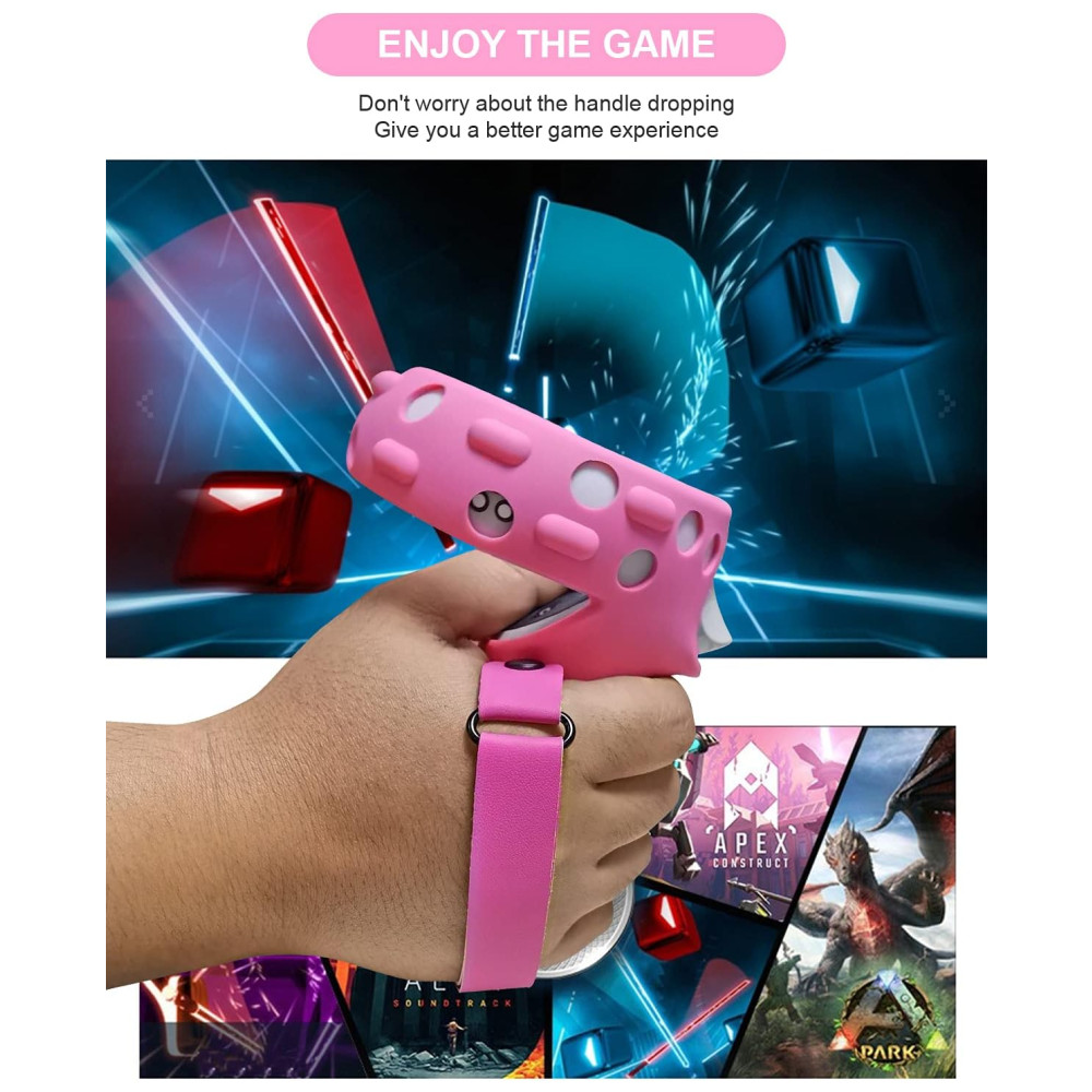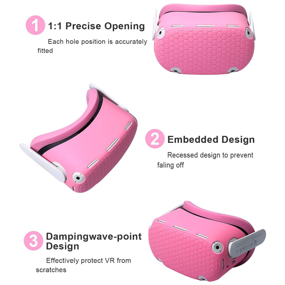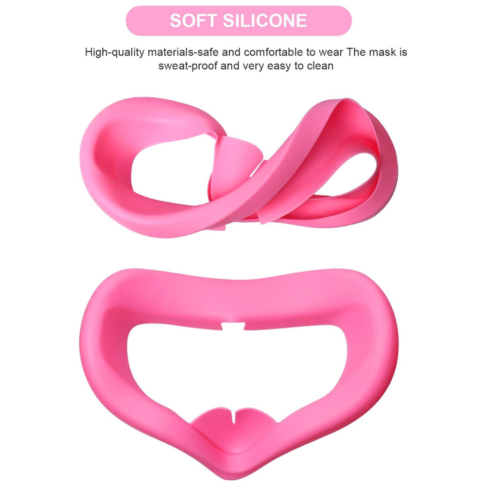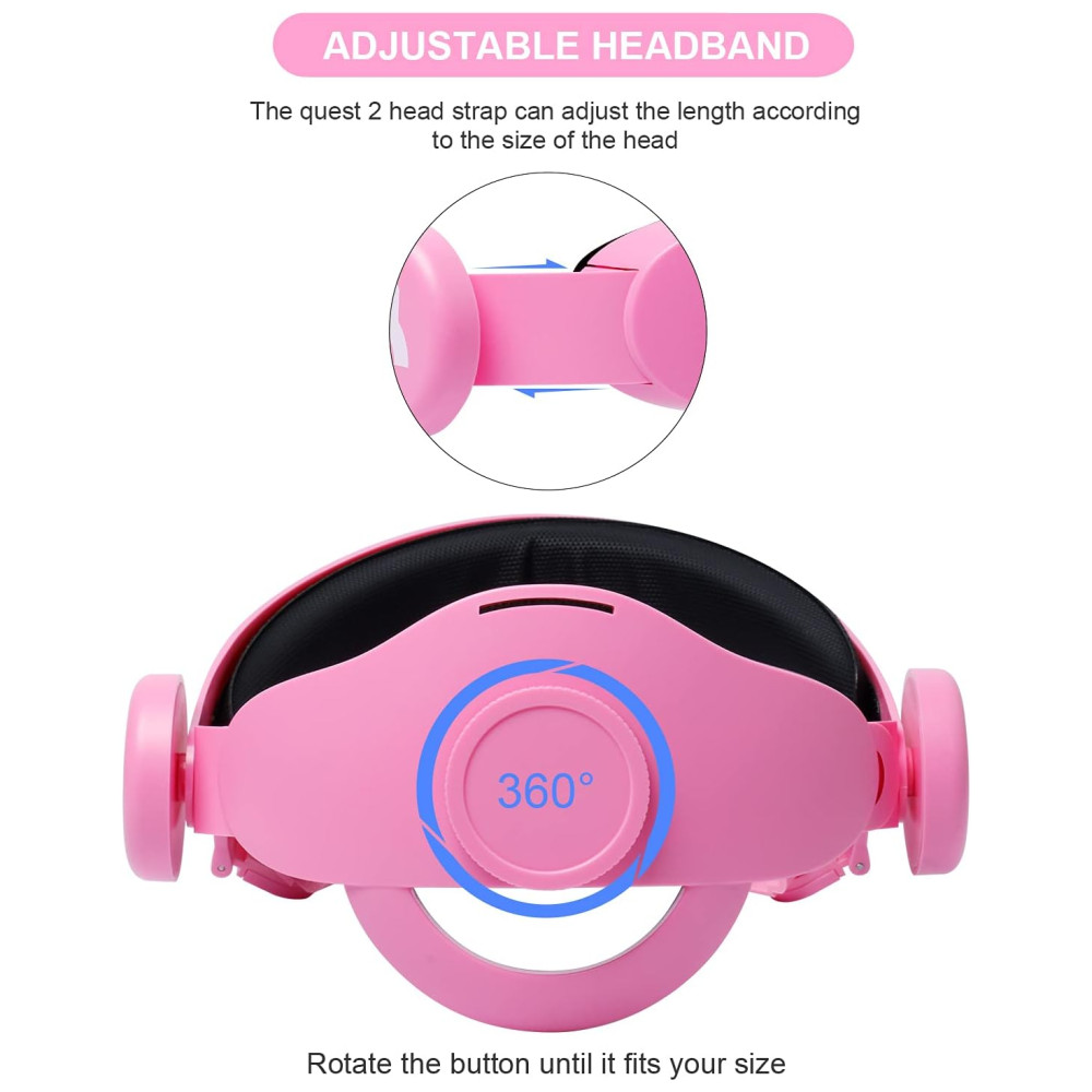 Alça de cabeça para Oculus Quest 2 com capa de silicone para controle de toque capa protetora de concha VR e capa facial VR 6 em 1 conjunto de reposição MODJUEGO Rosa