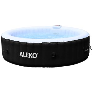 Hidromassagem Inflável ALEKO 6 Pessoas 265L 130 Jatos Painel Digital Aquecedor 1200W PVC Redonda Preto/Branco 110V