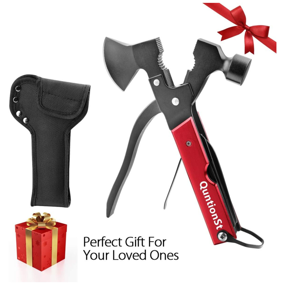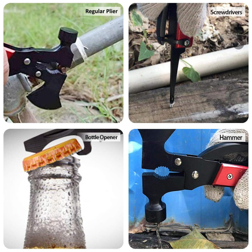 Kit de ferramentas multiferramentas para camping Ferramenta multiferramenta 16 em 1 ao ar livre inclui alicate e chave de fenda de 2 modelos, alicate, martelo, machado, cabo de alicate, lima, mola, mini faca, abridor de garrafa, chave hexagonal de fileassored, descalcificador de peixe, serra de madeira e uma trava de segurança. Este equipamento tem muitos usos e é o kit de salvamento mais compacto e inteligente de seu tipo.