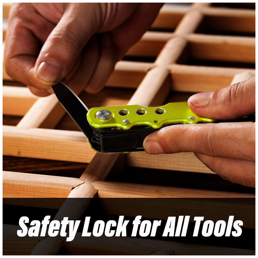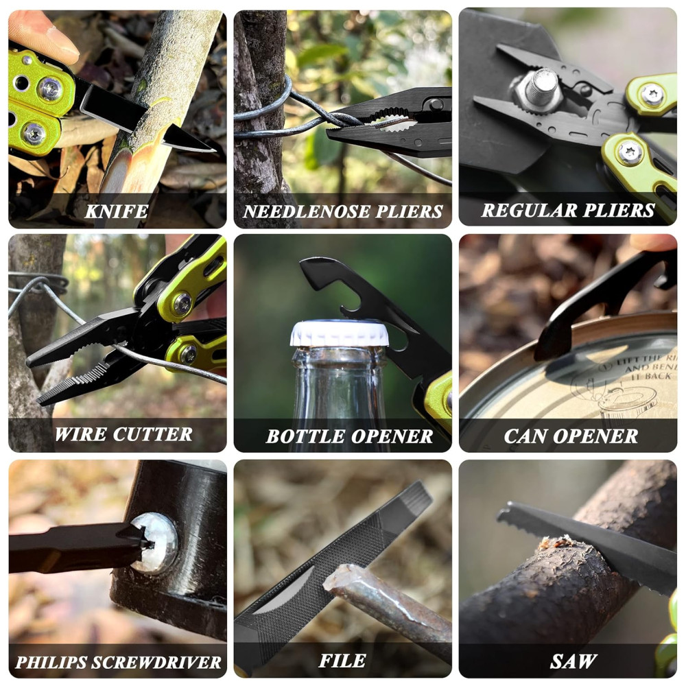 Ferramenta de bolso multifuncional 12 kits perfeitamente combinados, incluindo alicate, faca, serra, chave de fenda, cortador de arame, abridor de garrafas , latas em uma ferramenta multifuncional e vem com uma bolsa de náilon durável. Um must have para qualquer caixa de ferramentas ou faça você mesmo.