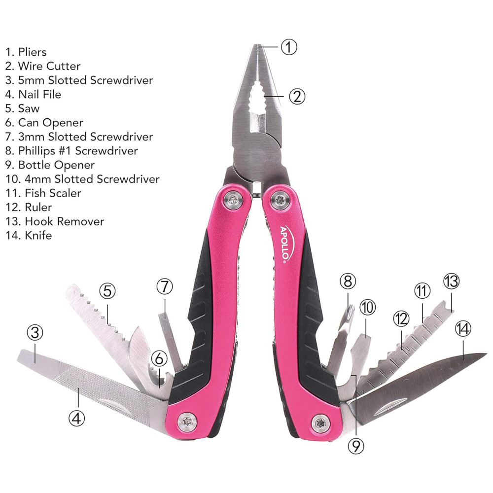 Alicate Multifuncional 14 em 1 Aço APOLLO TOOLS DT5015P Rosa