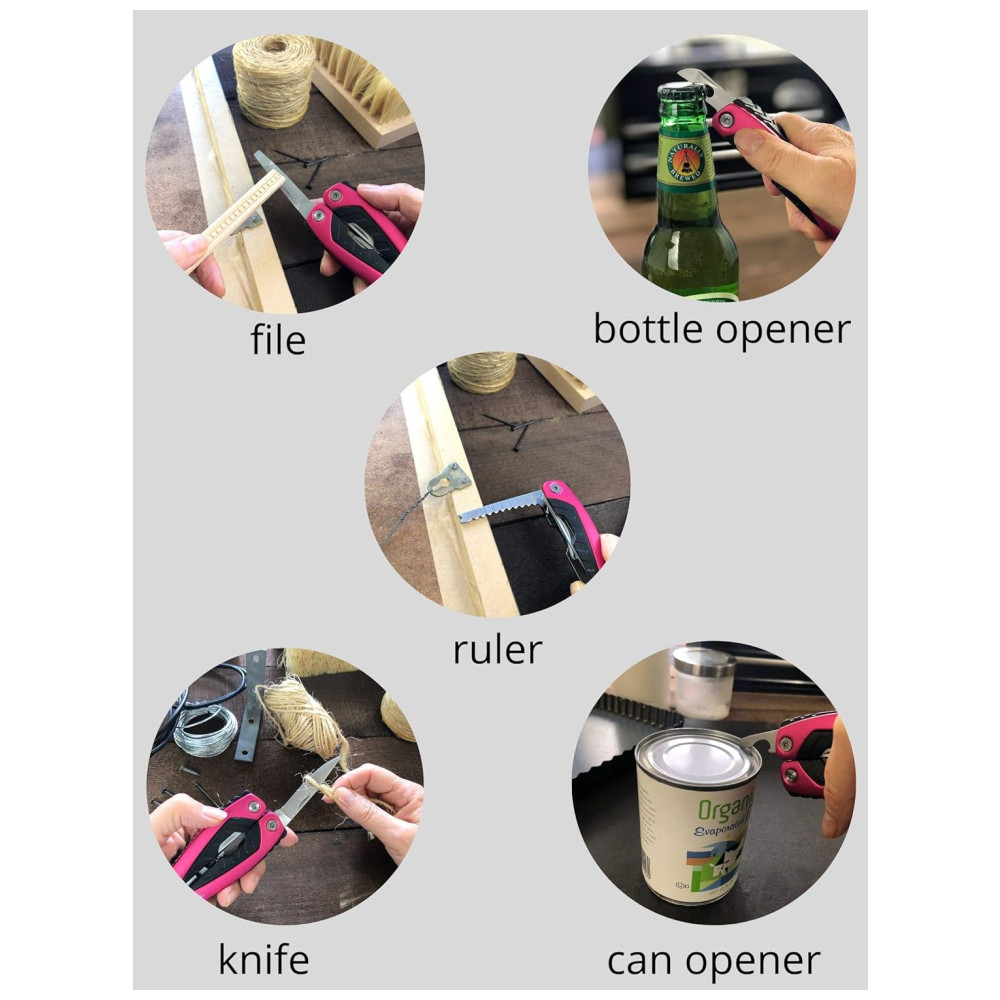 Uma ideia de presente ideal para quase todas as pessoas em sua vida aqueles que amam viajar, pescar, criar, consertar e aqueles que querem se sentir sempre preparados. Esta ferramenta de qualidade é resistente, porém leve e tem um belo acabamento rosa.