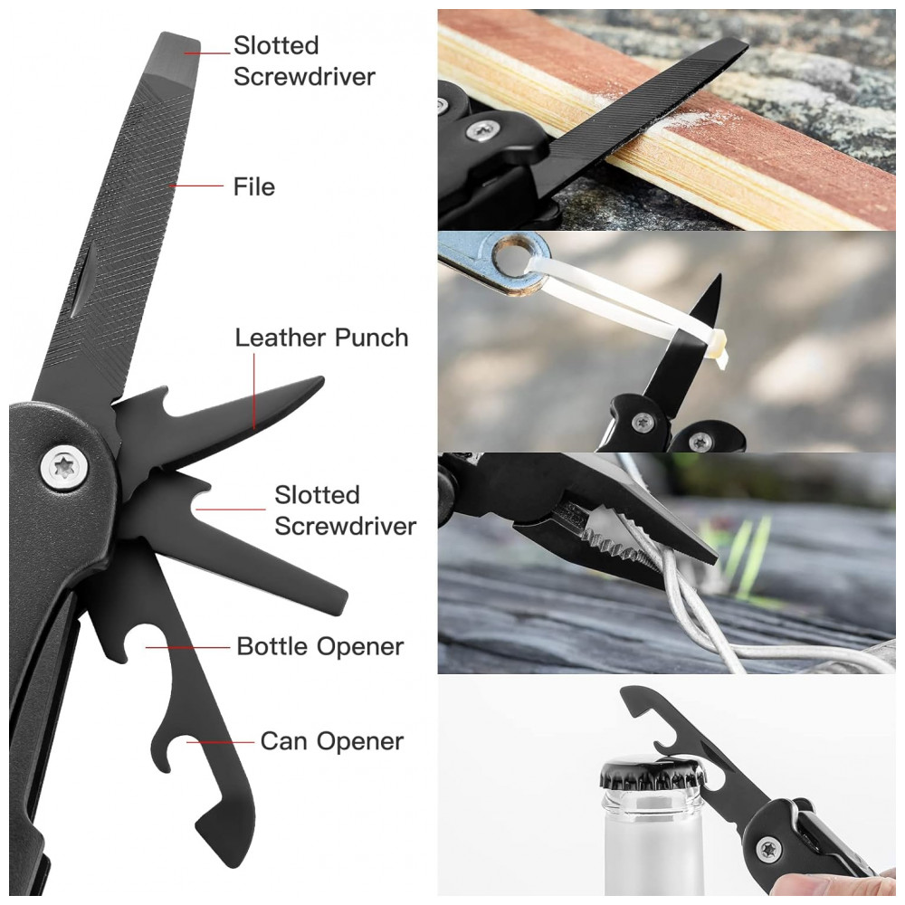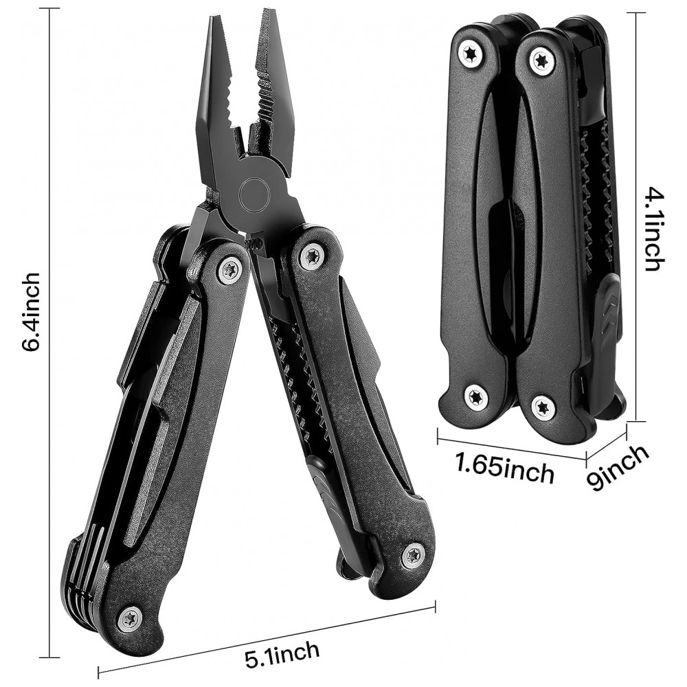 Material de alta qualidade em que você pode confiar Nosso alicate de ponta fina multiferramenta portátil é feito de aço inoxidável oxidado preto de alta qualidade, com excelente durabilidade, resistência ao desgaste, robustez e dureza, resistência à ferrugem e corrosão e longa vida útil, na qual você pode confiar totalmente para lidar com os próximos trabalhos difíceis e problemas.