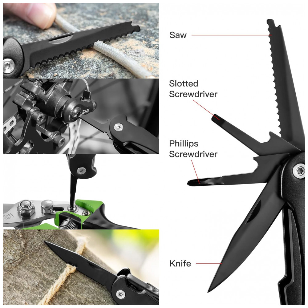 Multiferramenta atualizada Após inúmeros testes e experimentos, fangfo a nova multiferramenta 14 EM 1 com clipe de bolso atende mais às suas necessidades, uma compra, incluindo quase todas as ferramentas alicate de ponta longa, alicate de ponta redonda, alicate de corte, faca afiada, chave de fenda philips, chave de fenda S, faca serrilhada, lima dupla face, chave de fenda L, raspador pequeno, chave de fenda M, abridor de latas, abridor de garrafas, removedor de gancho.