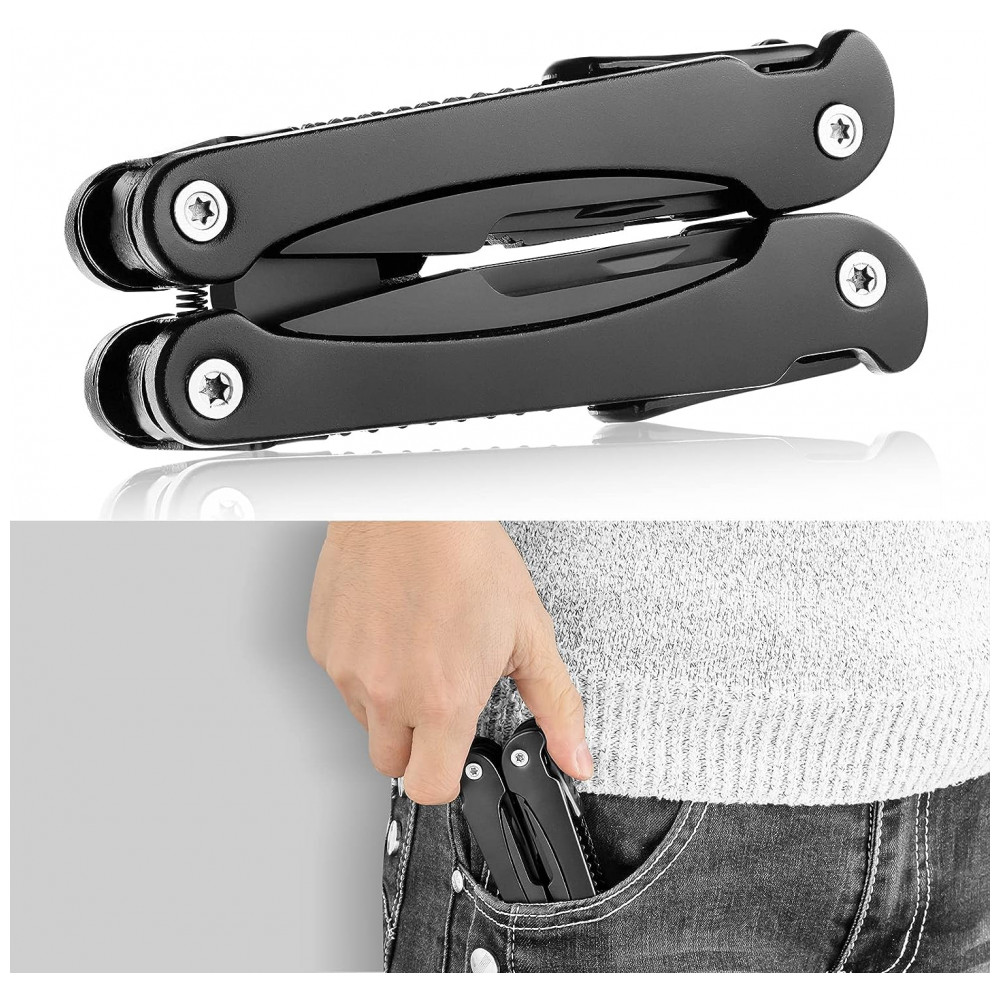 Alicate Multifuncional 14 em 1 Aço Inoxidável com Estojo de Nylon Fangfo Preto