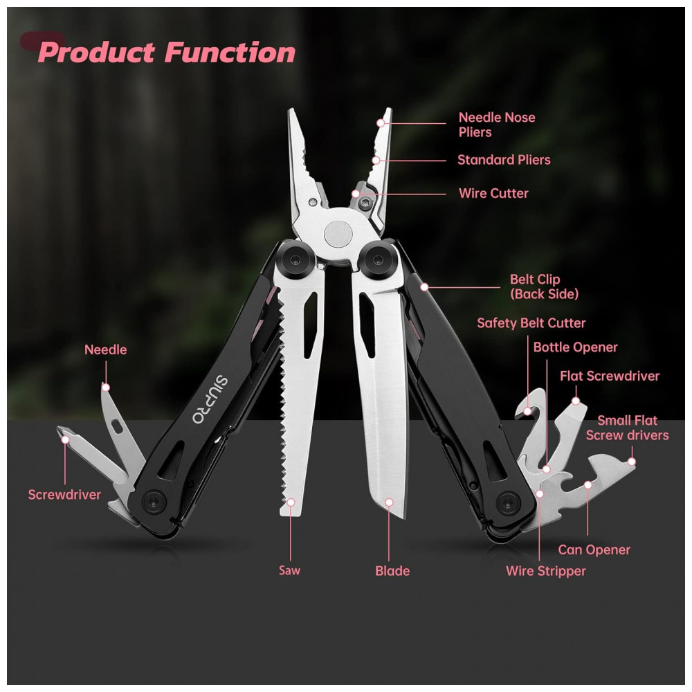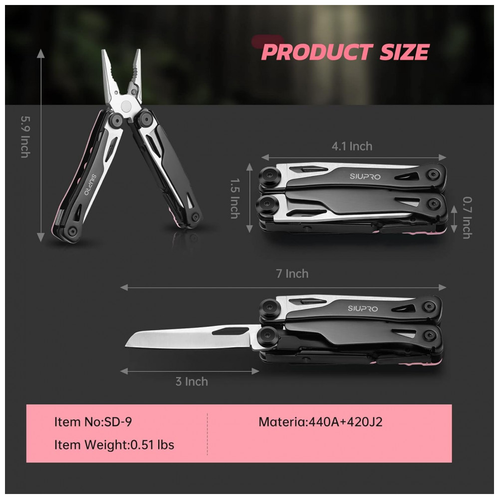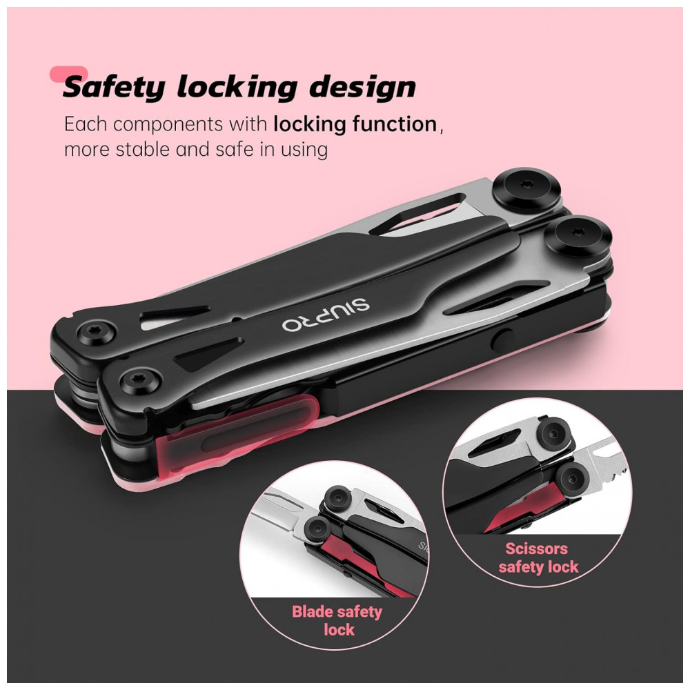 Alicate Multifuncional 14 em 1 Aço Inoxidável com Travamento Automático SIUPRO SD9 Rosa