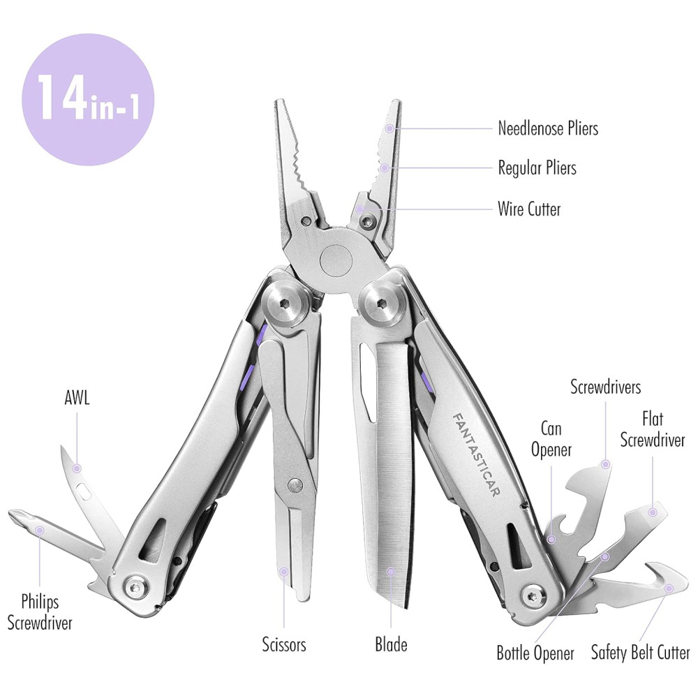 Alicate Multifuncional 14 em 1 Aço Inoxidável Roxo FANTASTICAR Violeta