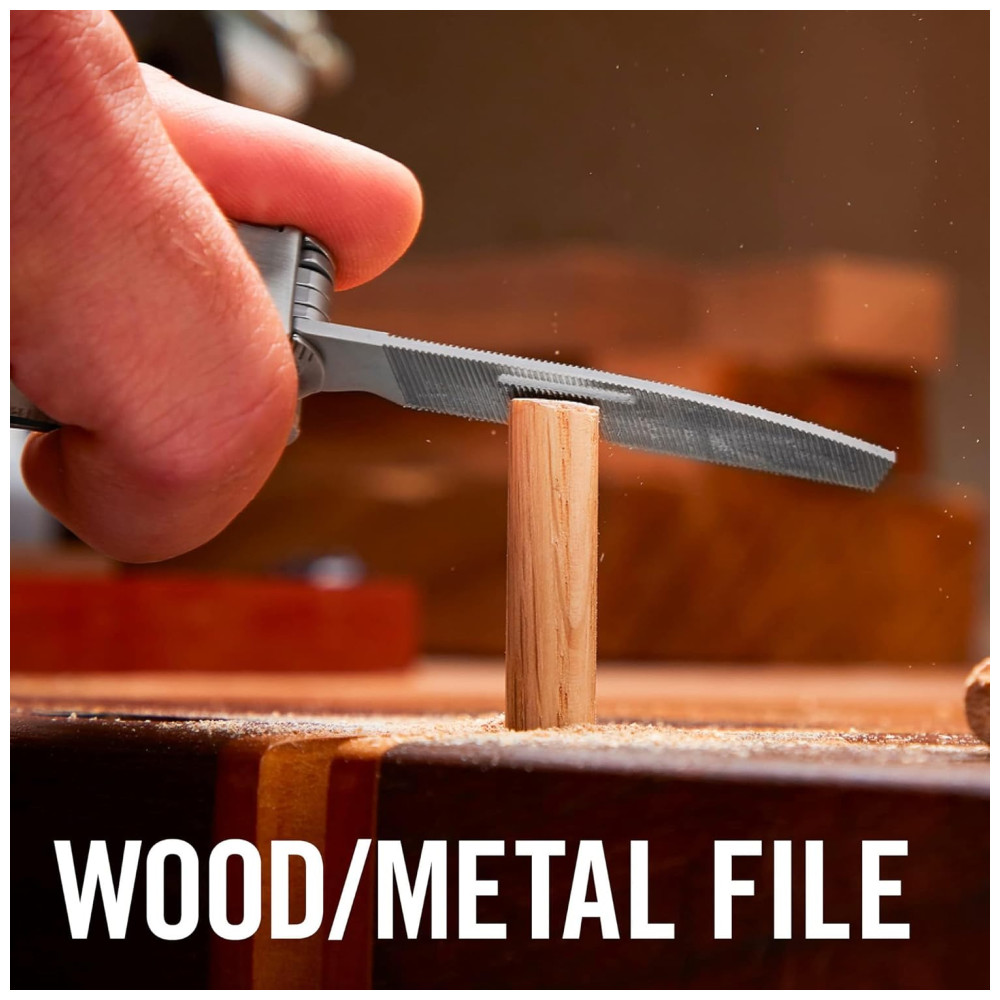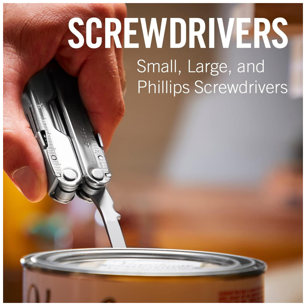 17 ferramentas em 1 A abundância de ferramentas do Rebar inclui facas, alicates, chaves de fenda, cortadores de fio, um alicate elétrico, um descascador de fios, abridores de latas e garrafas, uma lima, uma serra, um furador e uma régua.