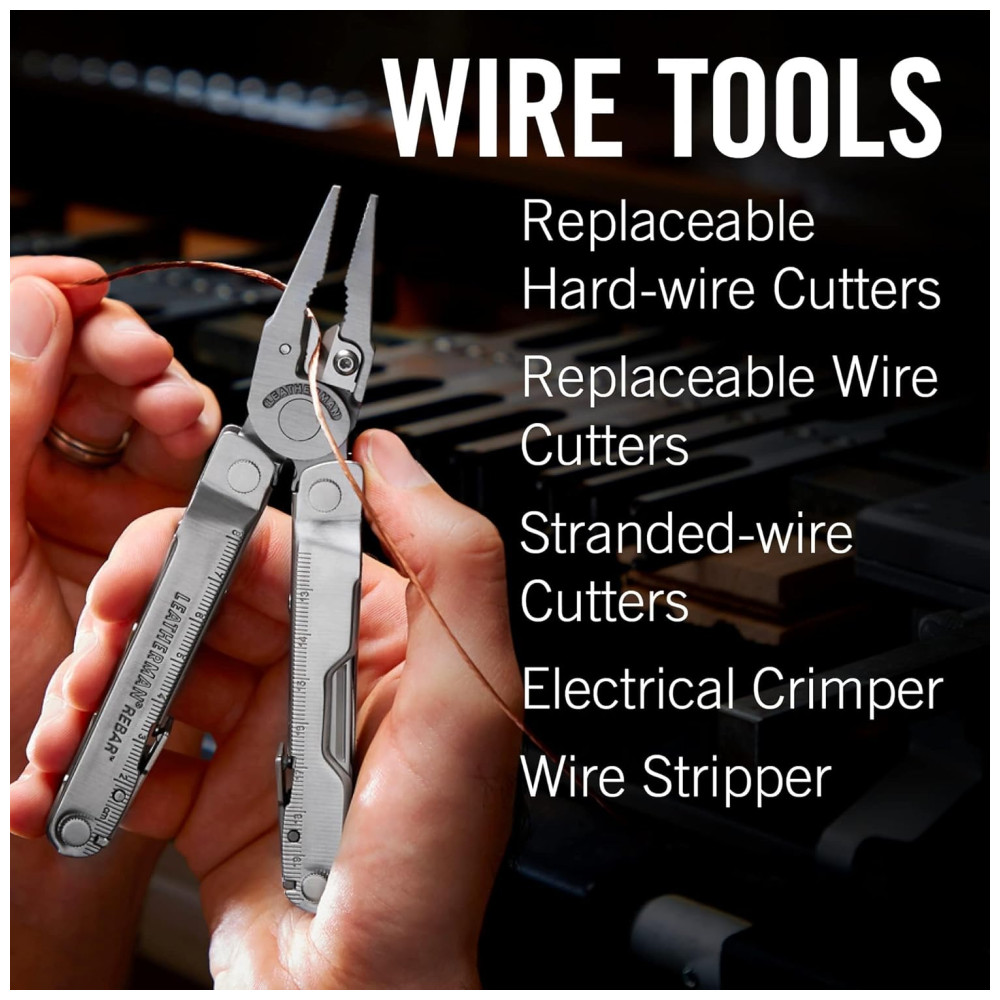 Design mais forte o alicate Rebar foi otimizado para resistência e apresenta cortadores de fio, fio substituíveis uma novidade para uma ferramenta de 10 centimetros da Leatherman.