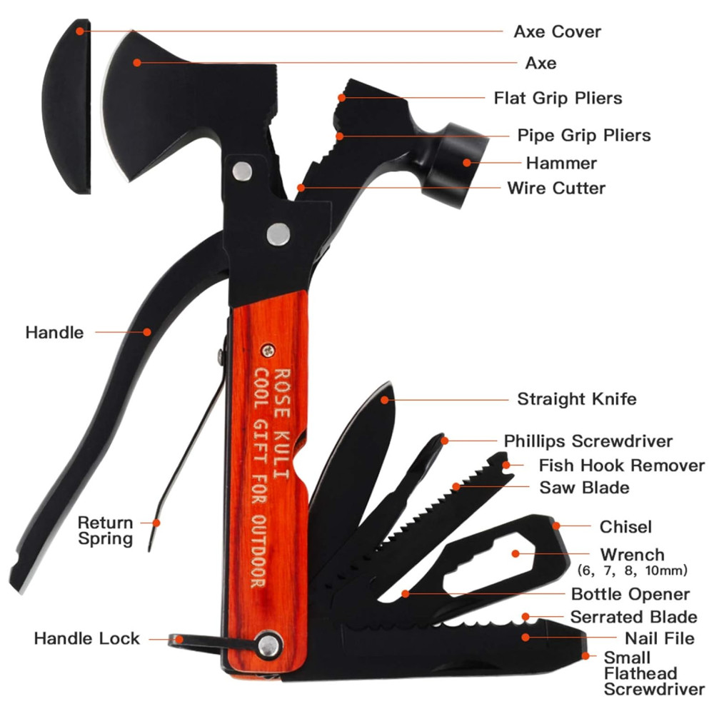 Presentes incríveis Tamanho compacto e design leve com clipe de bolso removível, Rose Kuli Multitool é um presente perfeito e acessível para homens, jovens e idosos podem usá lo. Recursos de travamento de segurança mantendo você e as ferramentas seguras no lugar