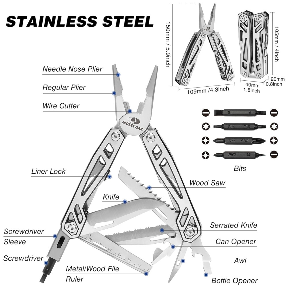Alicate Multifuncional 21 em 1 Aço Inoxidável MOSSY OAK SML Prateado