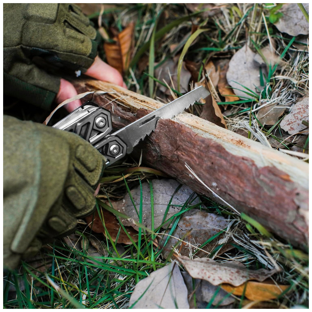 Recursos atraentes do modo A mola escondida dentro do alicate retém a estética da ferramenta geral e, simultaneamente, garante mais conforto quando você pressiona a alça. O porta broca magnético pode ser orientado a 90 graus do corpo da ferramenta para maior alavancagem. Além disso, as ferramentas têm orifícios ou saliências de bom tamanho para facilitar a abertura. É um multi alicate ideal para atividades ao ar livre como camping, pesca, caminhada, culinária, piquenique, faça você mesmo e muito mais