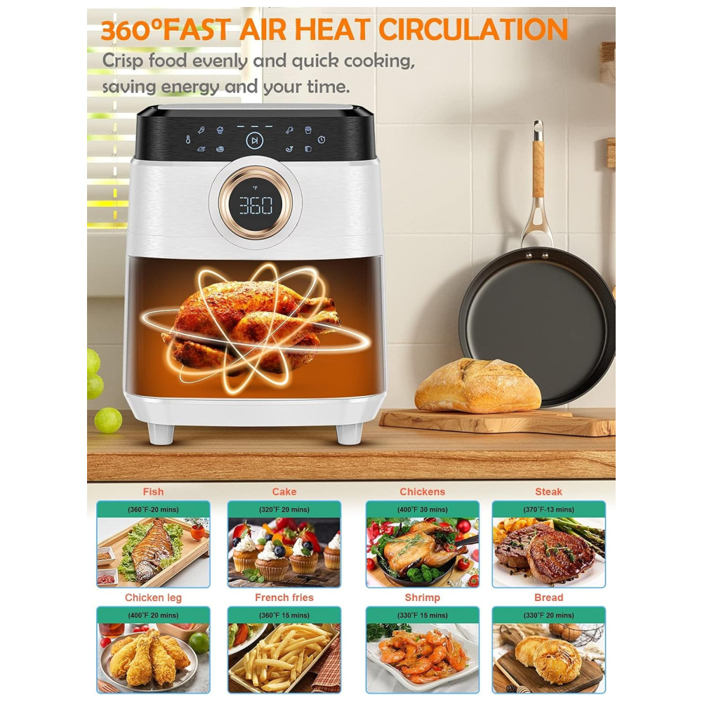 ALLcool Fritadeira Elétrica Air Fryer 8 em 1 Capacidade 5.8L com Painel Digital 1700W 110V Branca