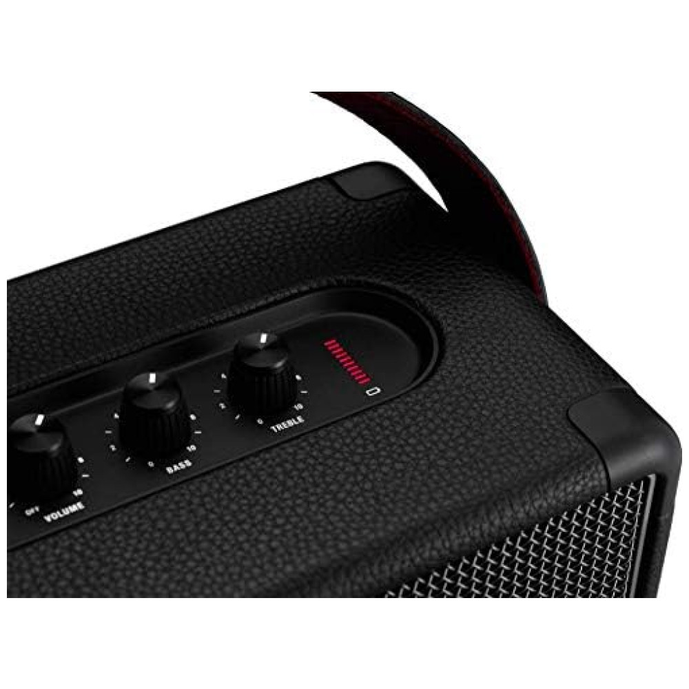 Kilburn II oferece mais de 20 horas de reprodução portátil com uma carga única. Som multidirecional via som estéreo Bluefin Faixa de frequência 52 20.000 Hz Vem equipado com tecnologia Bluetooth 5.0 apt para reprodução de música sem fio. Reproduz com qualquer dispositivo Bluetooth a um design de música de 3 falantes resistente a alta distância e tampas de alta qualidade Kilburn II possui funcionalidade de vários hosts para que você se conecte e alterne facilmente entre dois dispositivos Bluetooth. Indicador de bateria não superior Opção carregamento rápido 20 minutos de reprodução de classificação IPX2