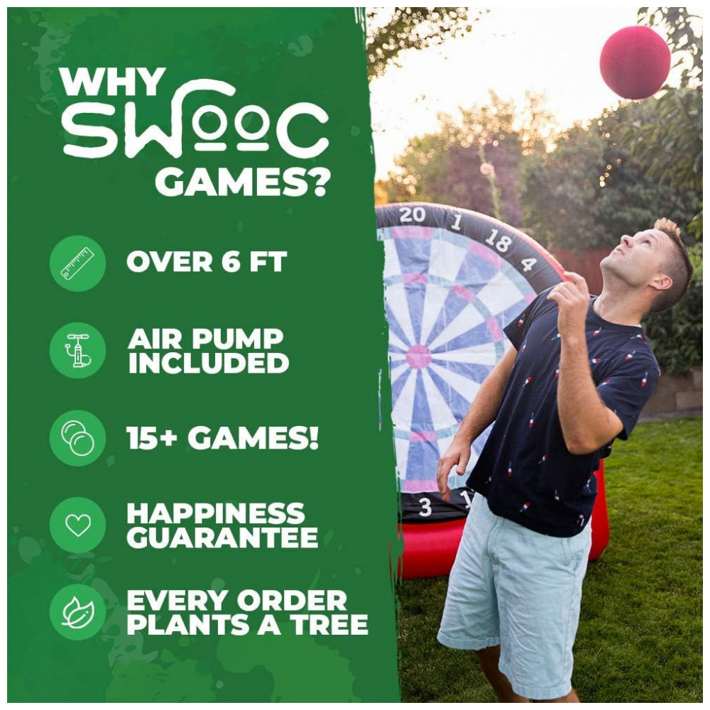 Alvo de Dardos Inflável Gigante de 187 Metros de Altura com Bolas e Bomba de Ar SWOOC Vermelho