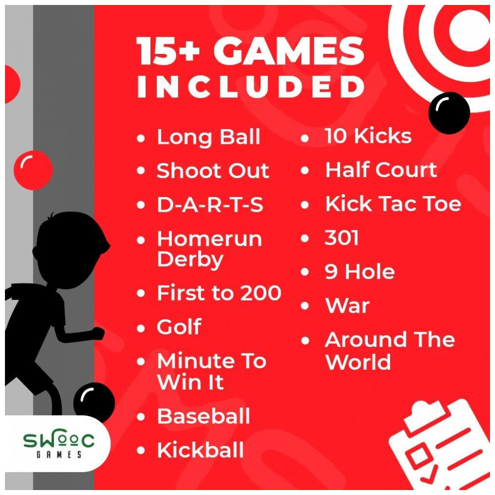 MAIS DE 15 JOGOS ORIGINAIS A diversão nunca para com nossos jogos originais EXCLUSIVOS. Escolha entre Long Ball, Shoot Out, D A R T S, Home Run Derby, Kick Ball, Golf, War, Kick Tac Toe e outros. Em todo o mundo, só para citar alguns.