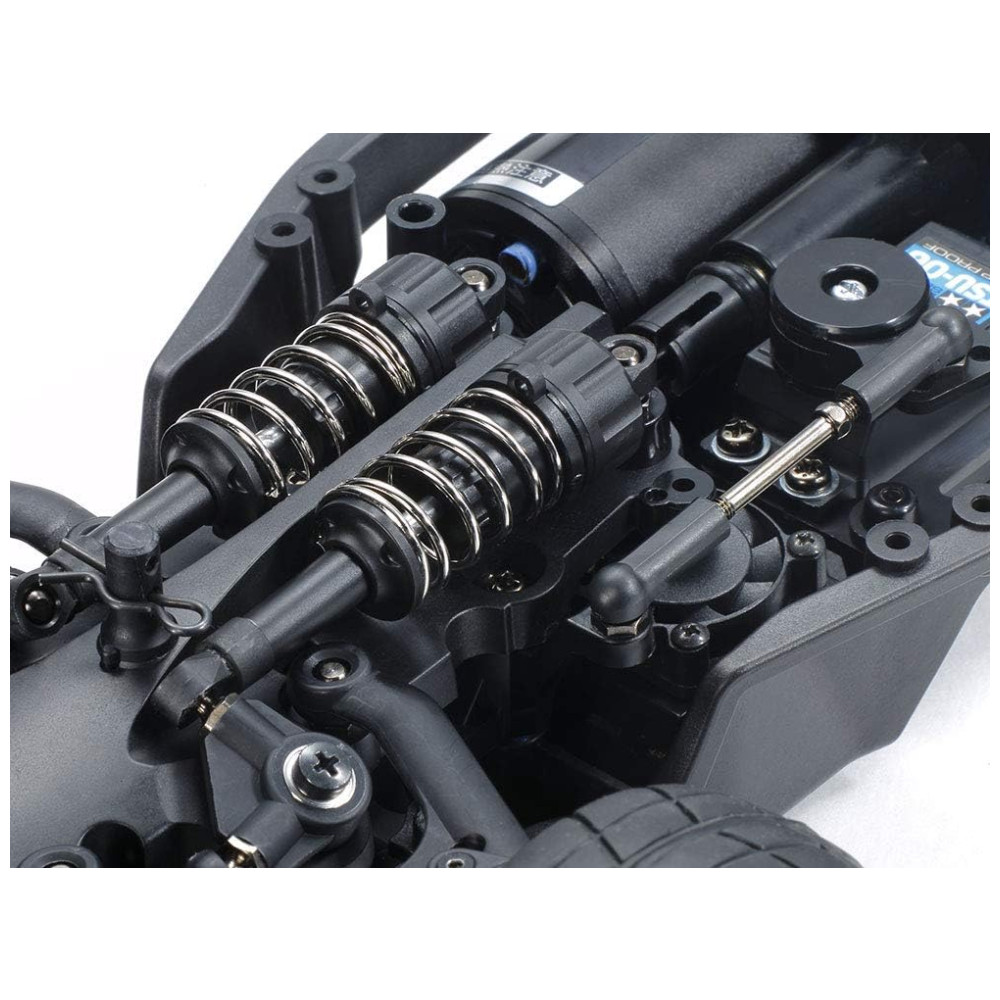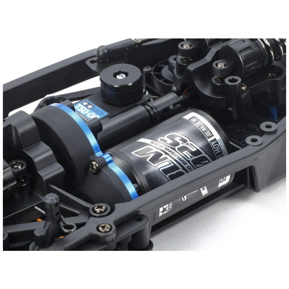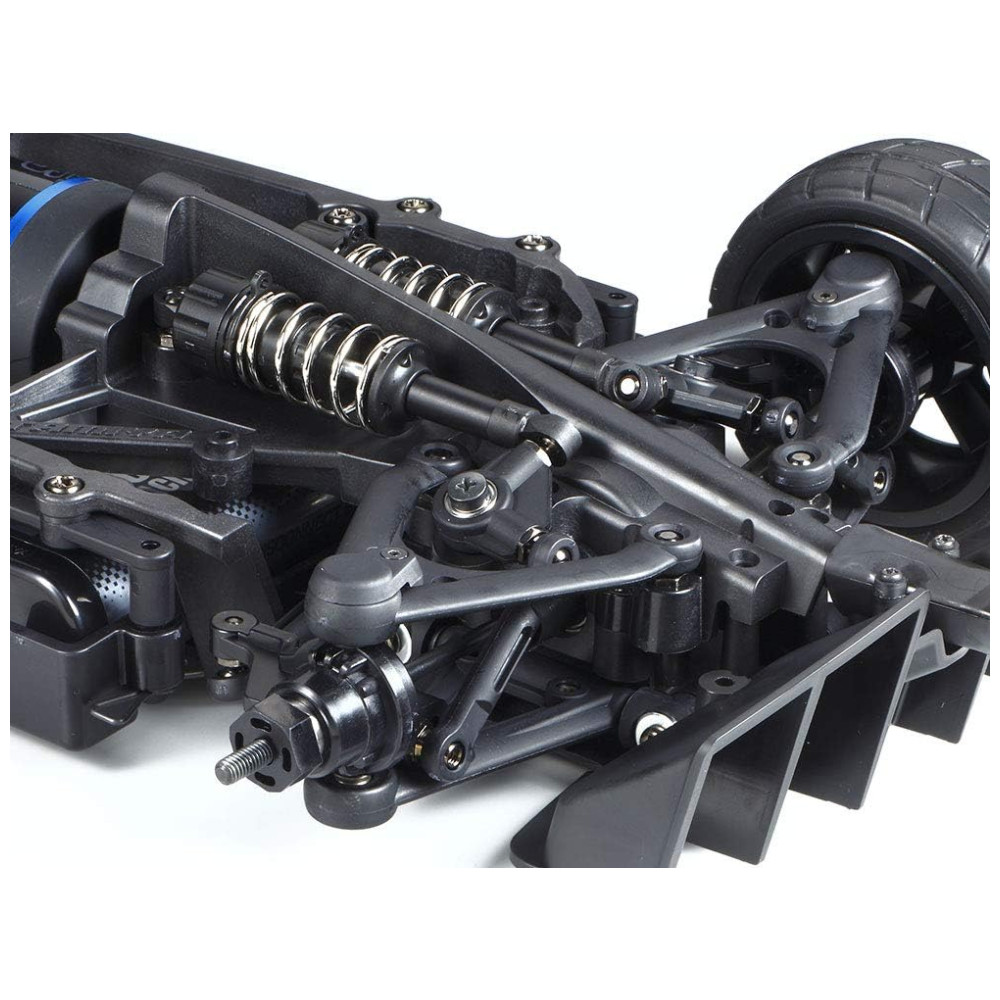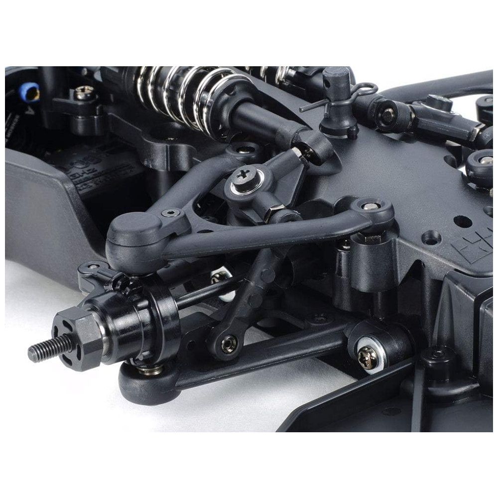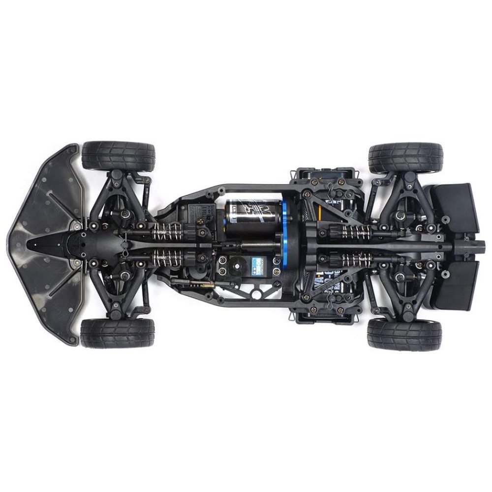 Além da carroria exclusiva da Fórmula E Gen2, este chassi é com carrocerias de carros de turismo padrão. Distância entre eixos 257mm. Uma quase híbrida de monocoque e uma estrutura superior é uma reminiscência da vista no TA07 e em outras máquinas modernas da Tamiya. Oferece uma gama superior e potencial para toda uma configuração de carros. A suspensão interna e a relação ao longo da utilização das partes direitas inferiores e superiores, para alavancar a manutenção simplificada. Os Ajudantes a óleo são acionados por imprensas e balanços. Altere os choques e os suportes da carroceria para alternar entre os layouts de formula e carro de turismo. Compatível com baterias de dimensão quadrada padrão IFMAR.