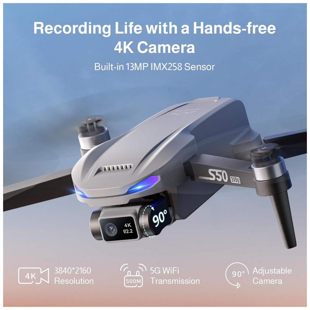 Capture cada detalhe em impressionante resolução de 13MP com o drone Ameta S50 Lite, equipado com uma câmera 4K profissional com sensor Sony IMX258 e lente ajustável em 90 graus. Ideal para paisagens, eventos familiares ou conteúdo criativo. Com transmissão WiFi de 5G para visualização em tempo real, GPS confiável para controle preciso, até 50 minutos de voo com duas baterias de 2000mAh, modos inteligentes de voo, como Follow Me e Waypoints, e design leve. Perfeito para presentear!