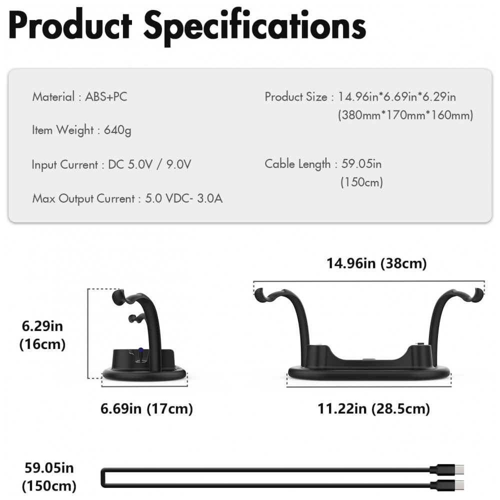 AMVR Charging Dock for Oculus Quest 2AMVR Charging Stand QC2, for charging Oculus Quest 2 Headset and placing two touch controllers. Using Type C magnetic design, automatic adsorption charging headset. Charging your Oculus Quest 2 headset in a cool and convenient way Quick ChargingQuest 2 Charging Dock QC2 support quick charging, built in smart chip,with electric current management function. It can be fully charged for oculus quest 2 headset in 2.5 hours Easy to UsePlace the Oculus Quest 2 Headset on the charging Station, and the magnet will automatically attach to the Type C charging interface. Set up a unique power switch to control the charging status freely. Keep your desktop tidy, neat and spectacular Compatible with Various Quest 2 Facial Cover PadsAn adjustment Button is set at the center of the VR Stand, which can adjust the width of the card slot so as to fit more quest 2 vr face cover pads. When you use a leather or silicone cover to protect your oculus quest 2 headset, you can adjust the button to wide What You Can Get1 set Charging Dock QC2 1 pcs Type C Charging Cable User Manual1. With 12 months of product warranty and 24×7 friendly customer service. We would be happy to receive any information about product issues