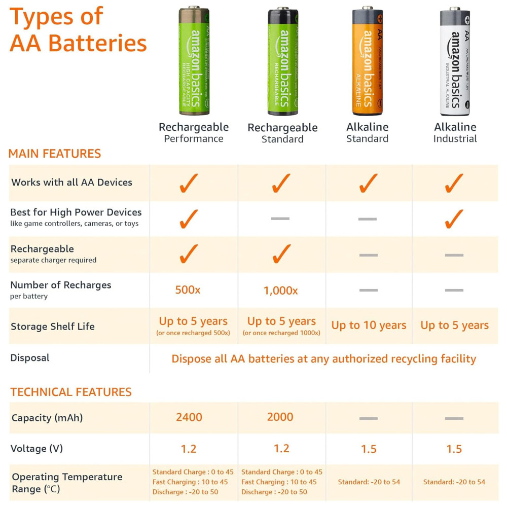 AMZ Pilhas AA Recarregáveis 2000 mAh até 1000 Recargas 8 Unidades
