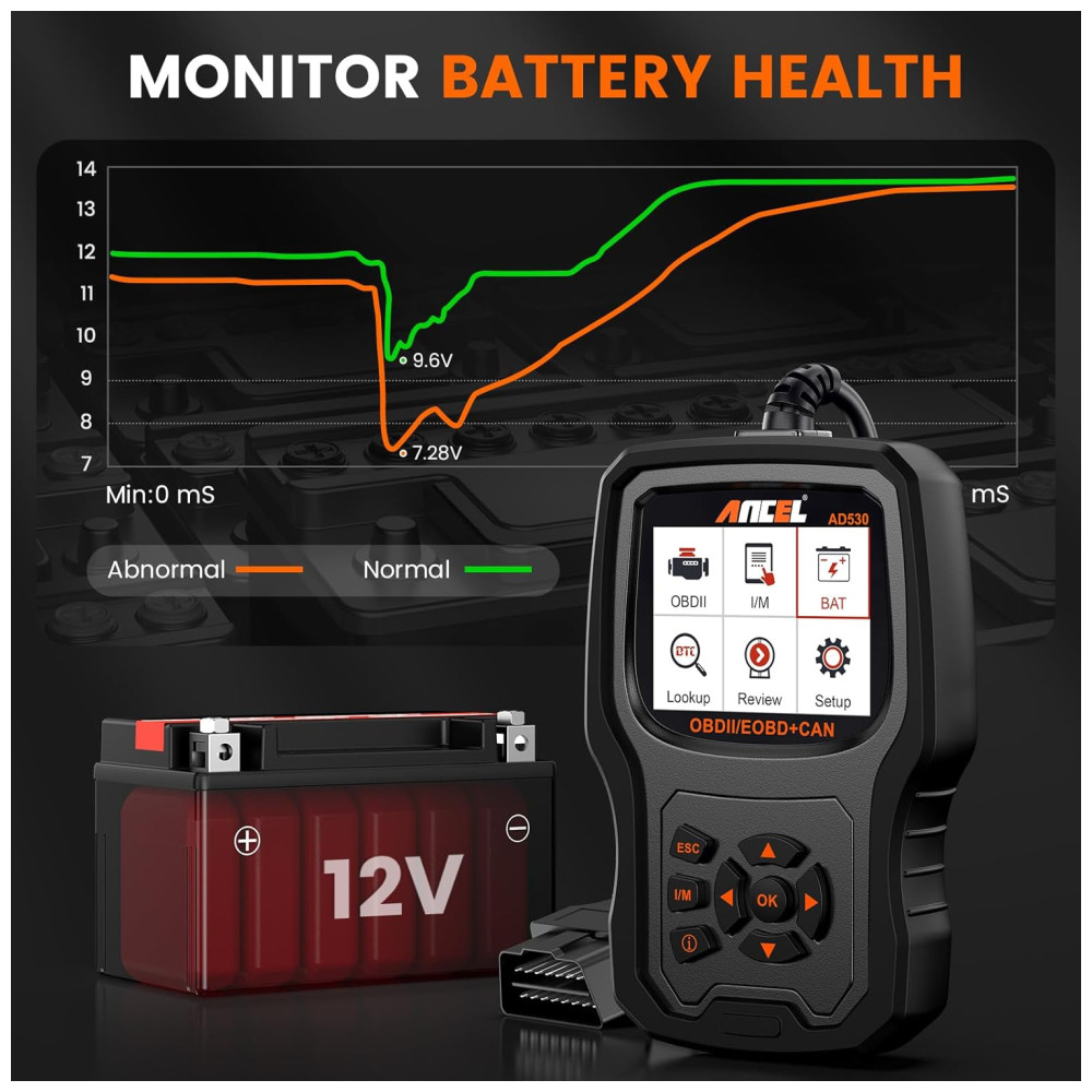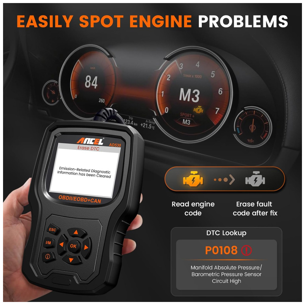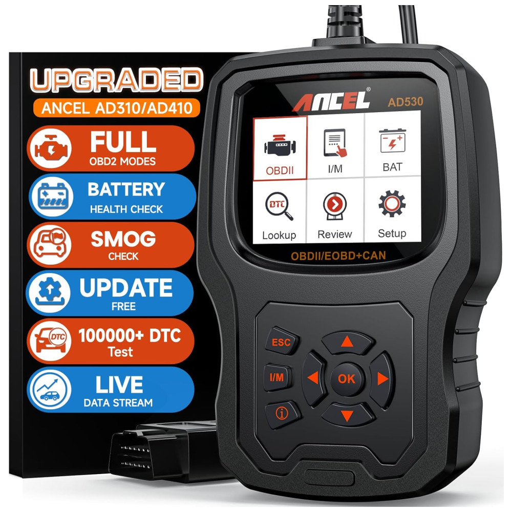 O scanner automotivo ANCEL AD530 realiza diagnóstico OBD2 para mais de 50 marcas e 100 mil modelos de veículos a gasolina fabricados após 1996, utilizando interface universal compatível com Windows 7/8/10 para atualização vitalícia e consulta de códigos. Equipado com chip STM32 de alta velocidade, tela colorida LCD 2,8″, gráfico de dados em tempo real e suporte para protocolos KWP2000, J1850 VPW/PWM, ISO9141 e CAN.