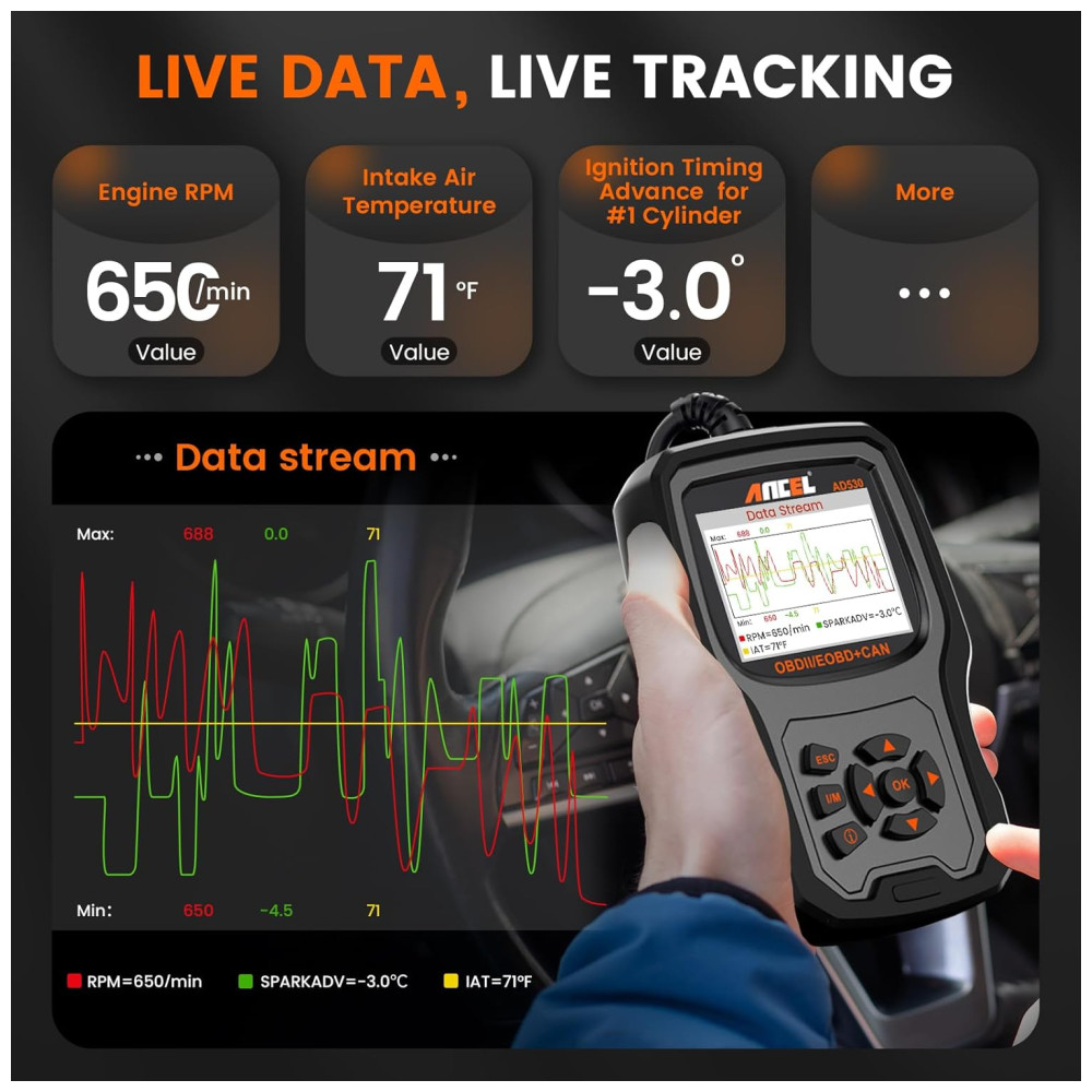 Scanner OBD2 ANCEL AD530 automotivo diagnóstico avançado leitor de falhas bateria grafico 10 funções tela LCD colorida Windows portátil 2 pilhas