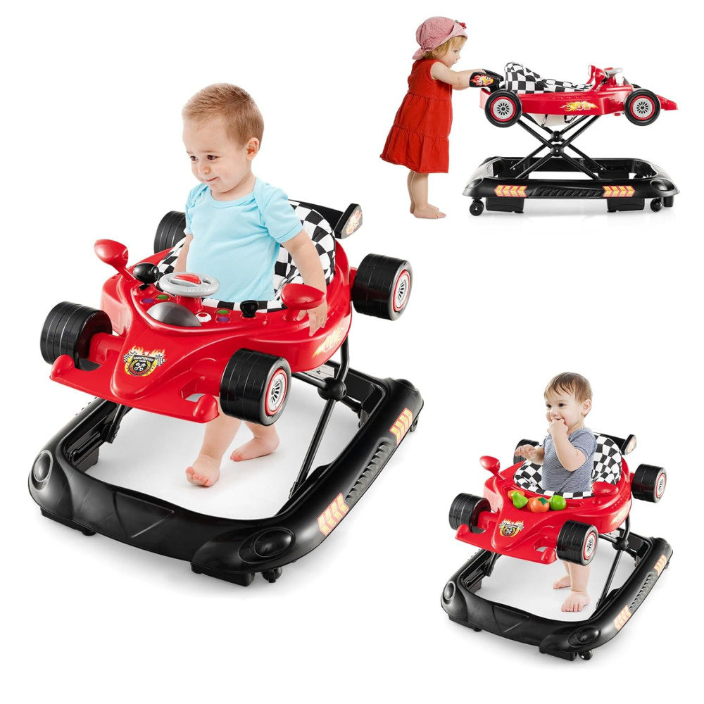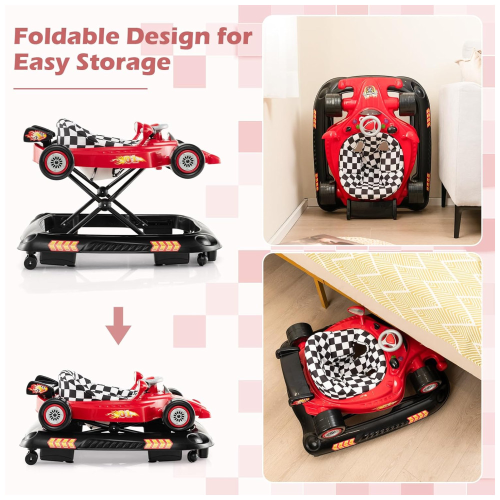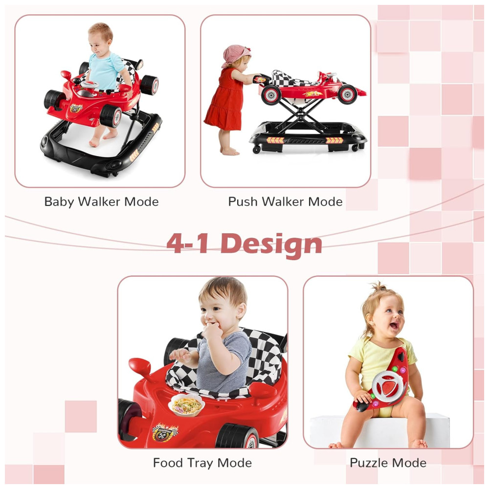 Andador 4 em 1 para Bebê BABY JOY Dobrável com Altura Ajustável Música e Luzes Anti-Tombamento Andador Empurra com Rodas para Crianças.