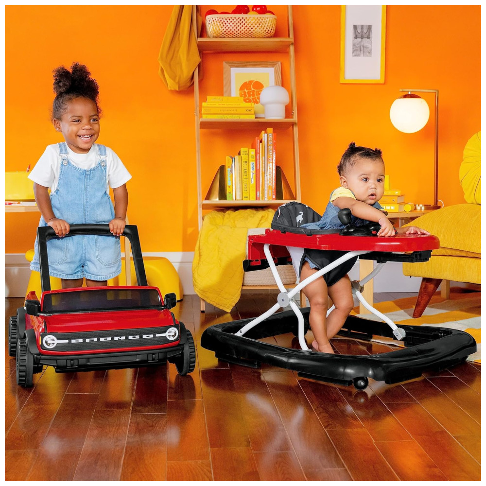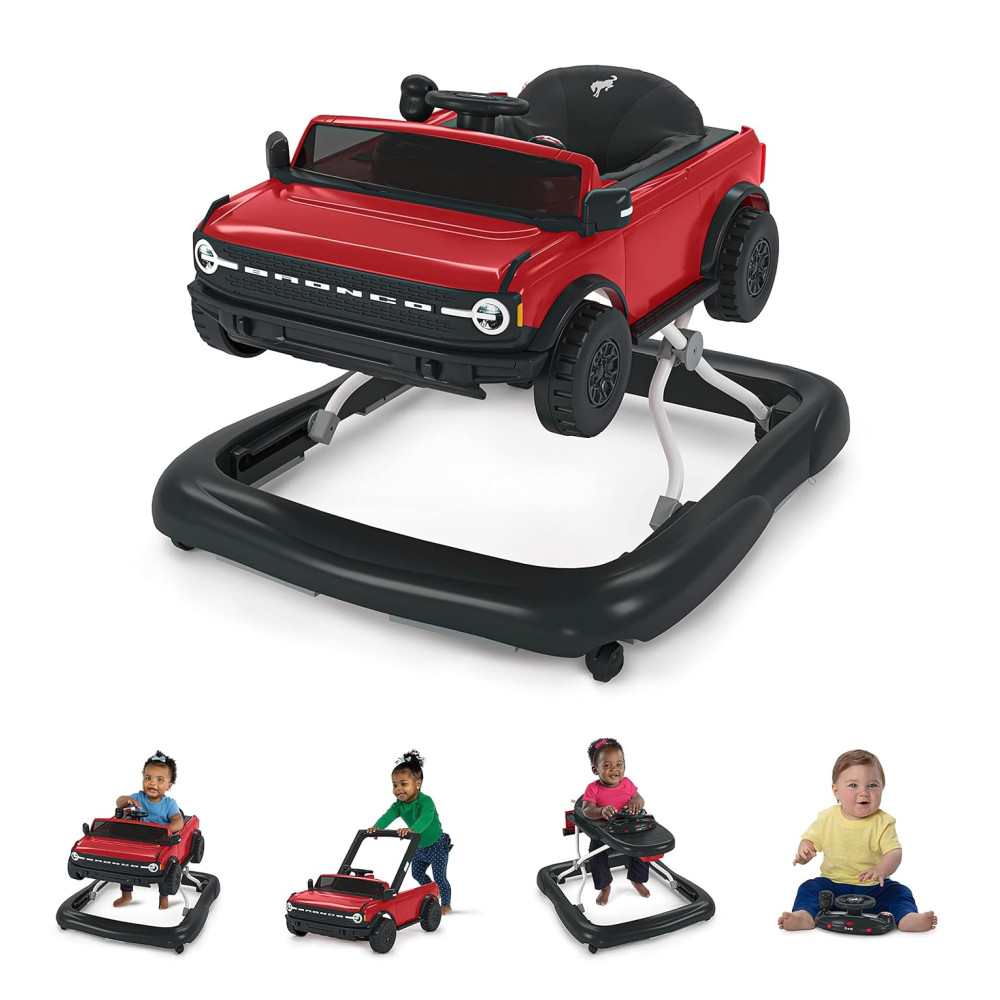 Andador de Bebê Bright Starts Ford Bronco Centro de Atividades 4 em 1 Vermelho e Andador com Volante Interativo Removível – Brinquedo.