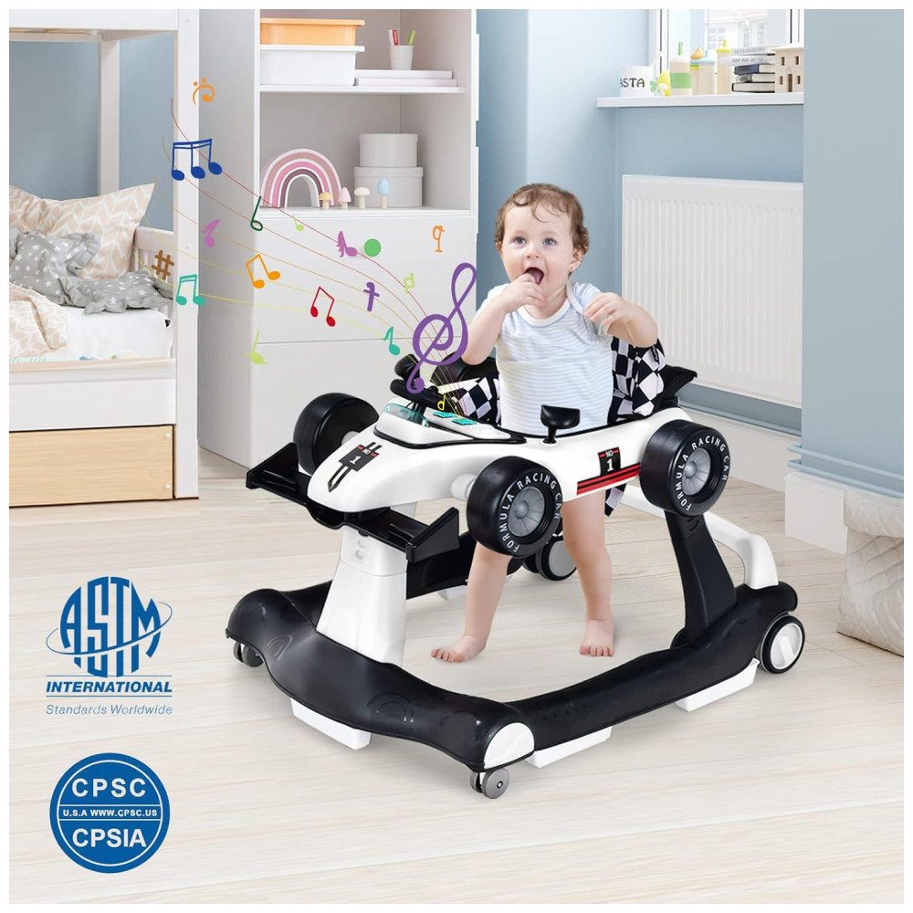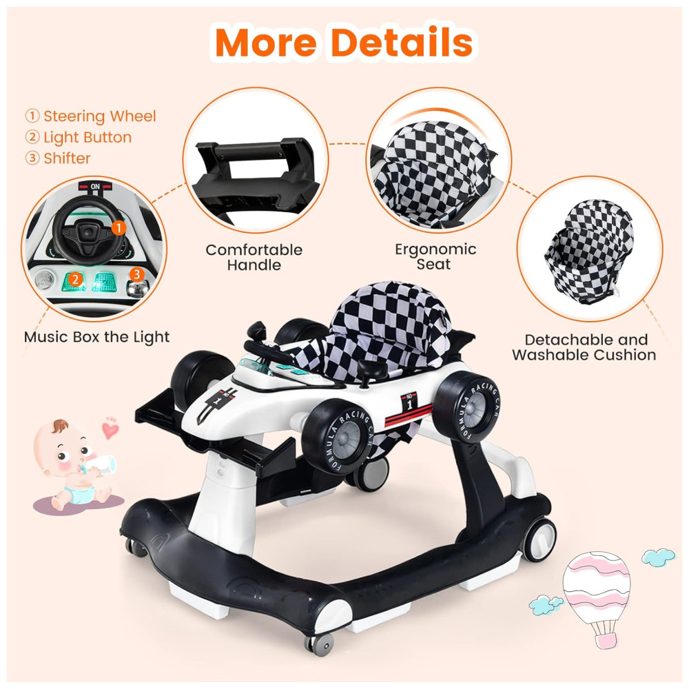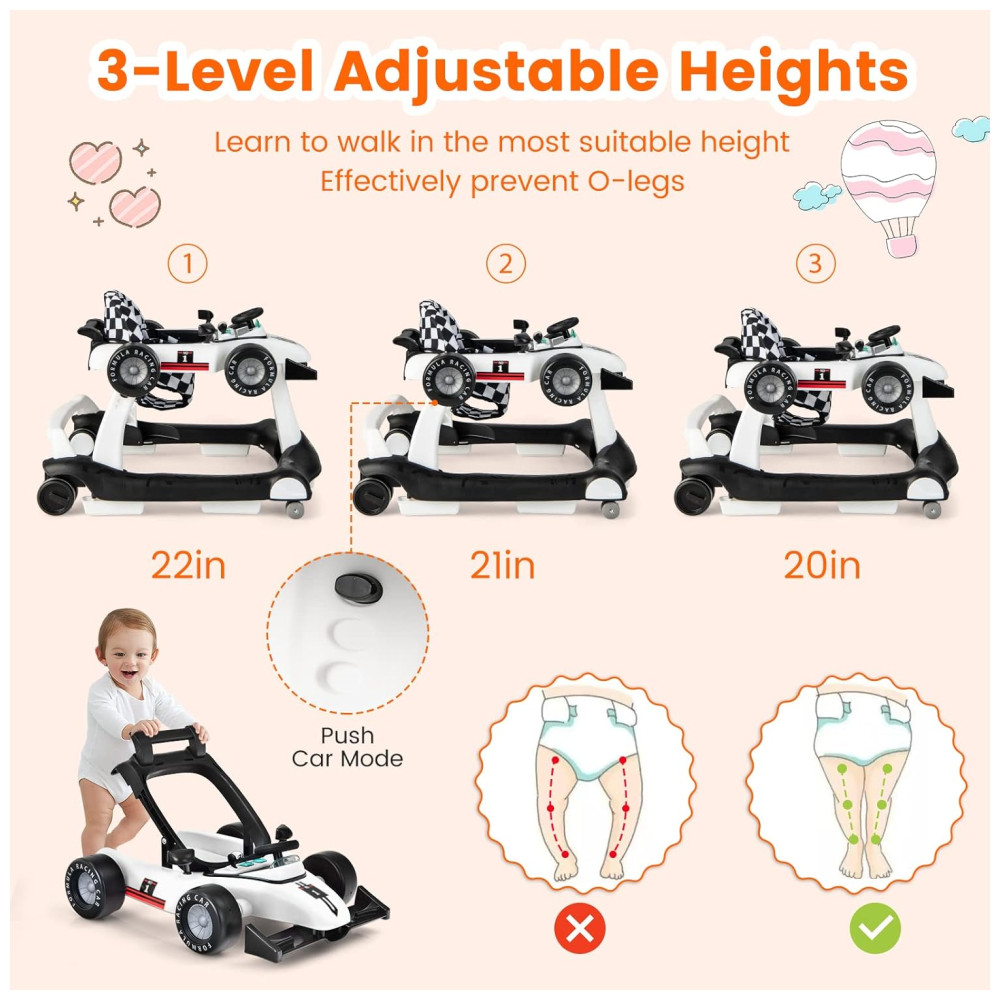 Andador de Bebê HONEY JOY 4-em-1 Com 3 Alturas Ajustáveis Rodas Suaves Velocidade Ajustável Assento Acolchoado Música e Luz Dobrável para Bebês
