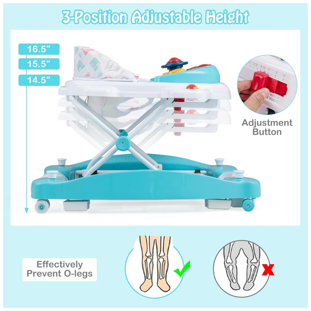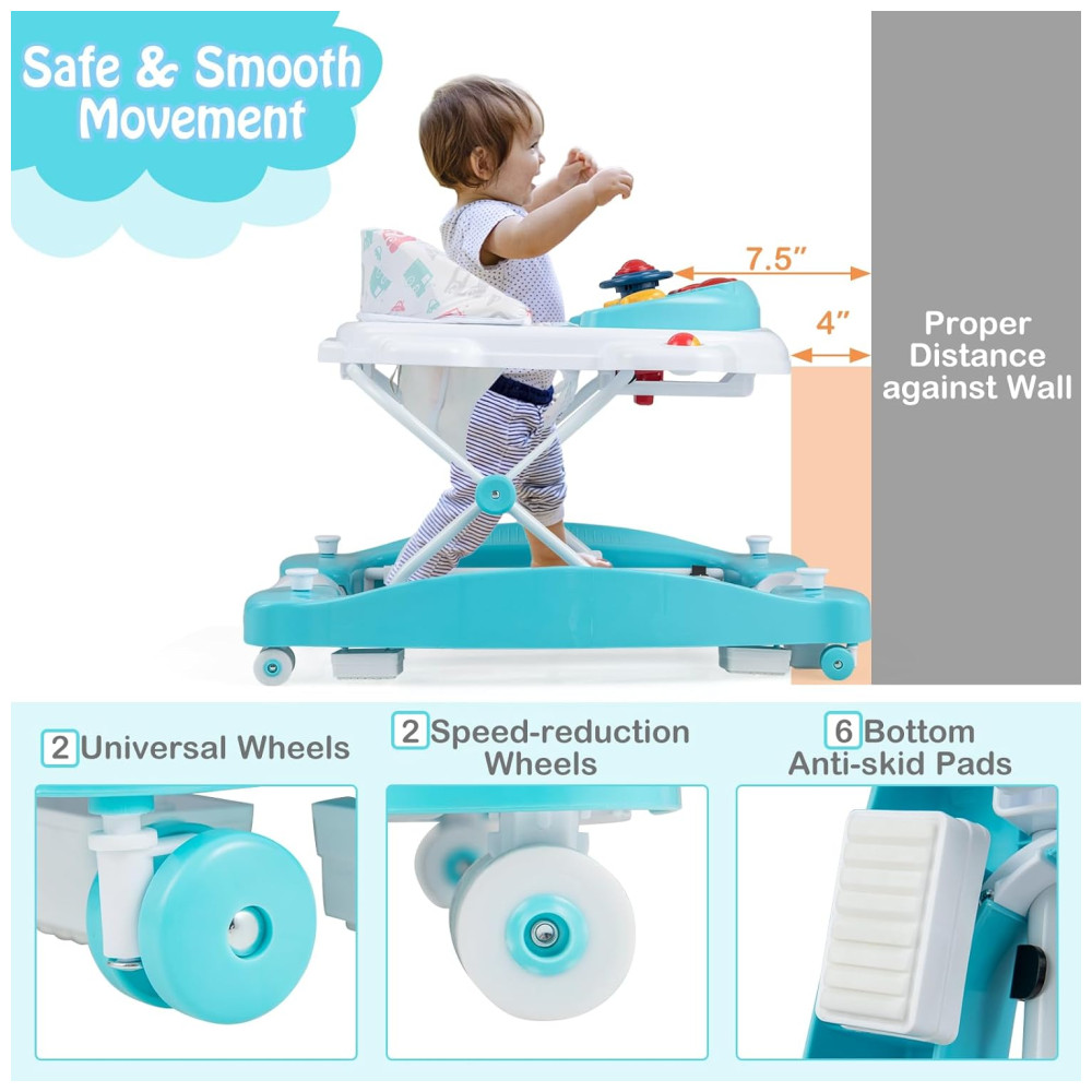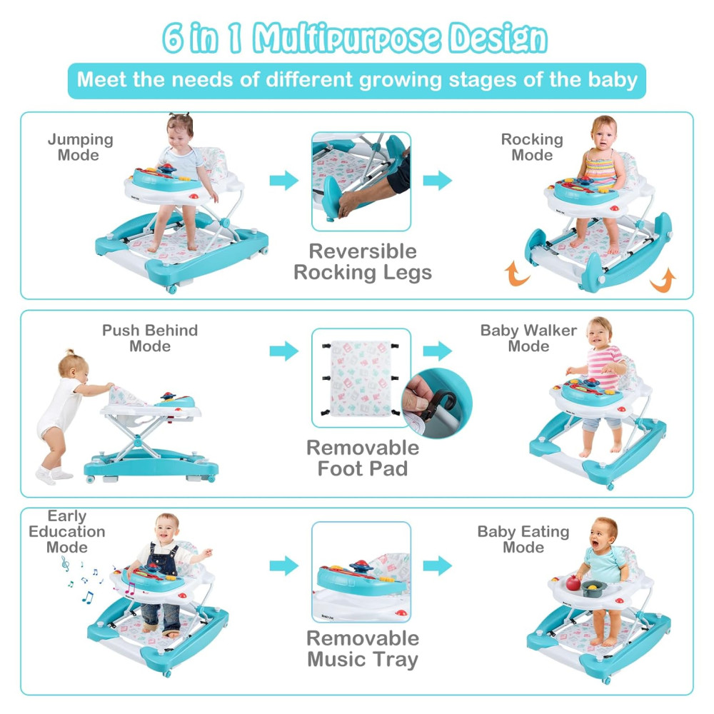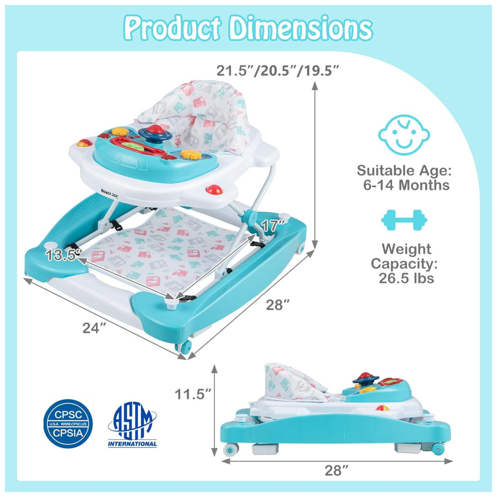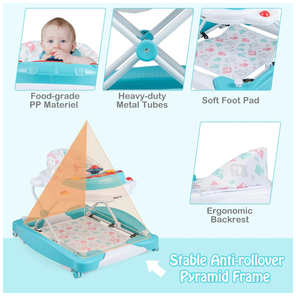 Andador de Bebê HONEY JOY 6-em-1 Dobrável Com Rodas Ajustável Balanço Música e Luzes. Para Bebês de 7 a 14 Meses Ideal para Meninos e Meninas.