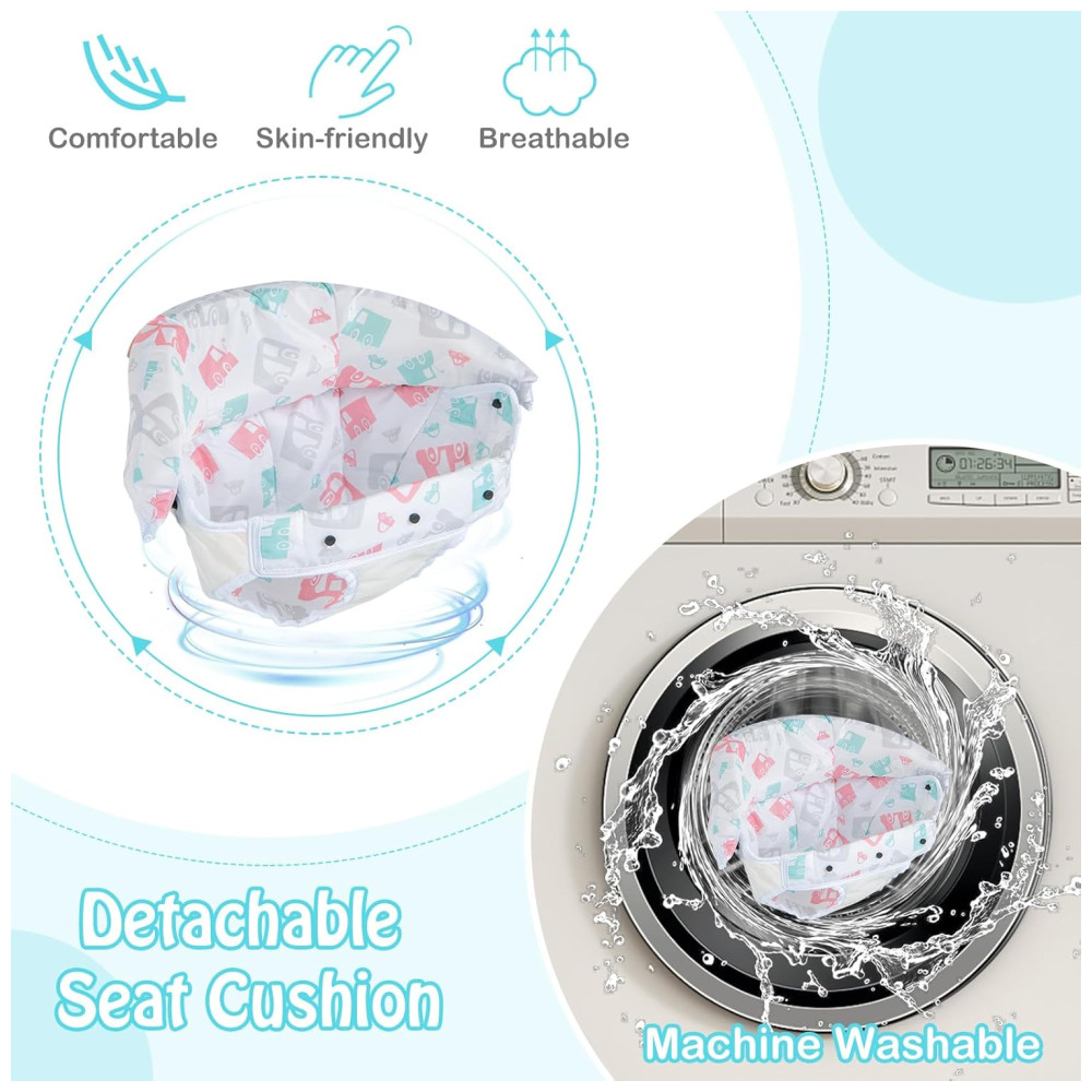 Conforto e Segurança Aprimorados: O assento removível é confortável, respirável e amigável à pele. Quando sujo, o assento pode ser lavado na máquina. O encosto ergonômico e o almofadado suave nos pés promovem posturas corretas ao sentar e ficar em pé. A estrutura estável anti-capotamento e a distância segura de 19 cm da parede evitam acidentes potenciais.
