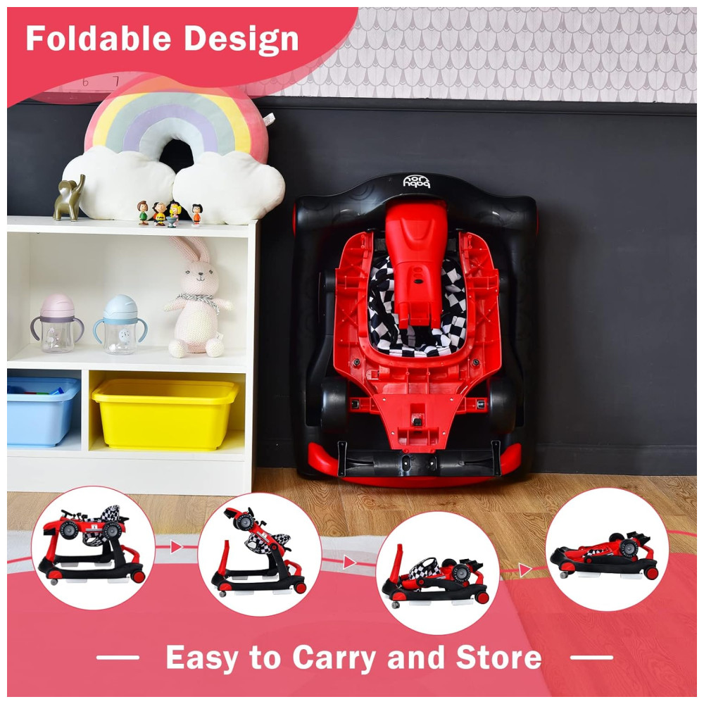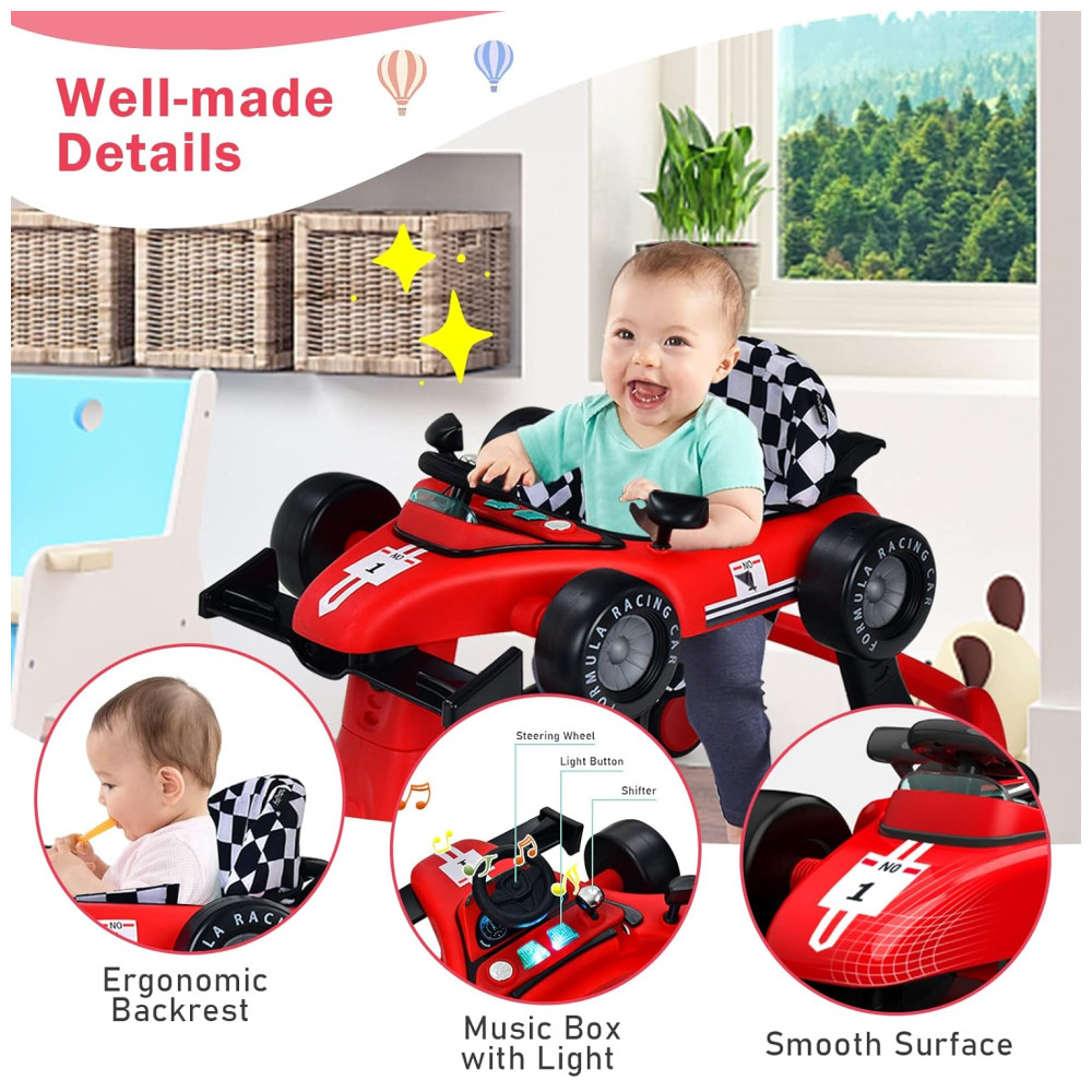 Andador Infantil Interativo 4 em 1 com Sons Luzes e Atividades Baby Joy Vermelho