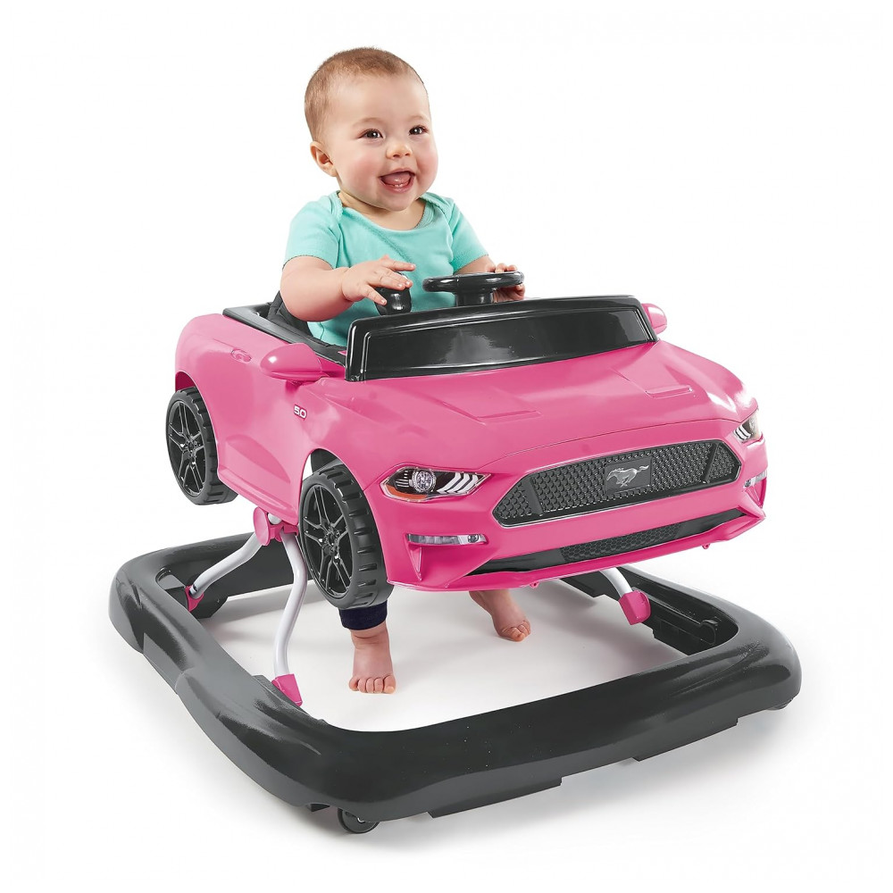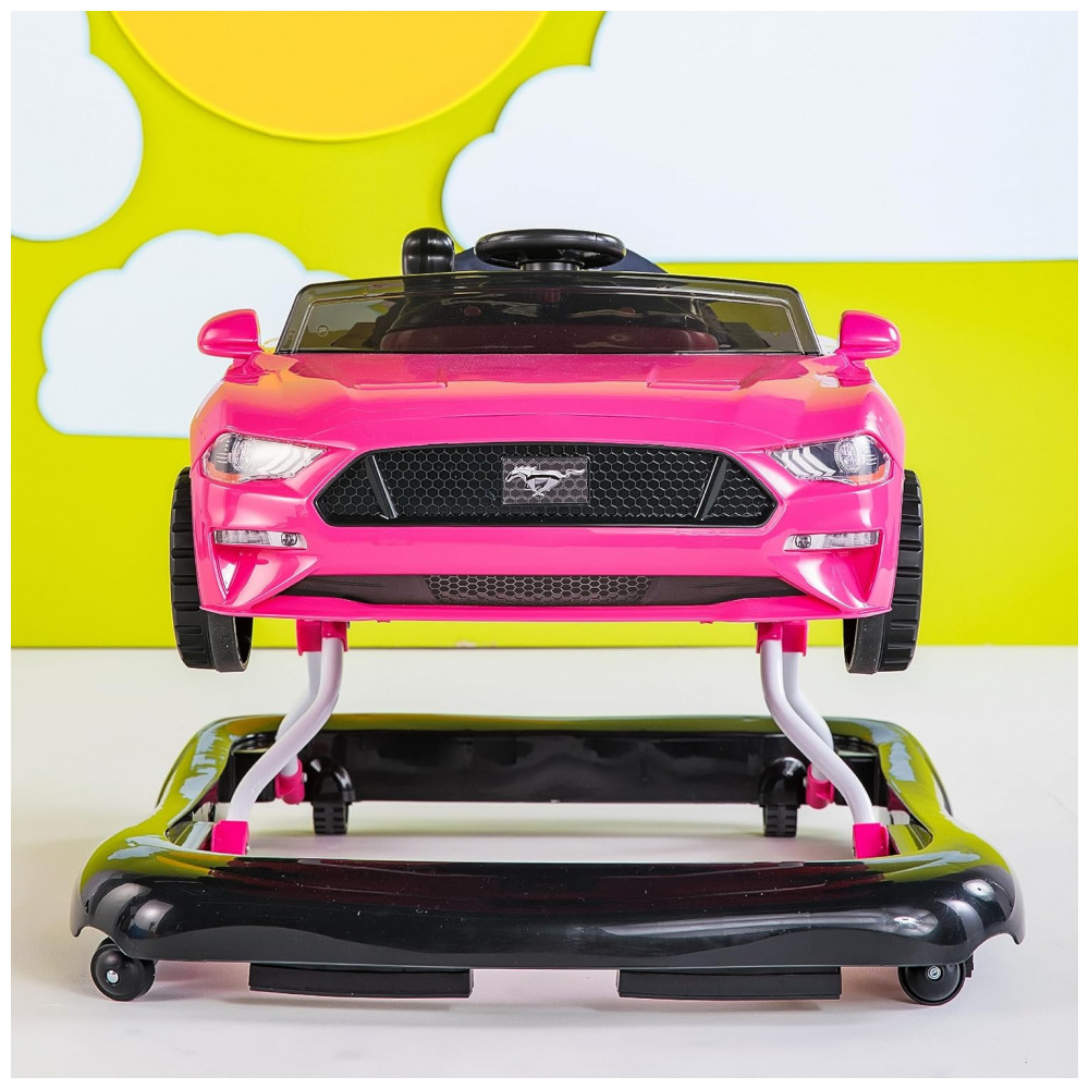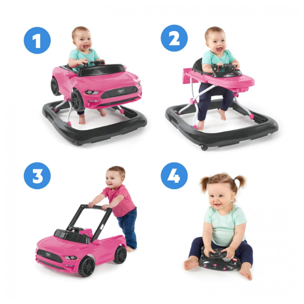 Acelere seu motor e prepare se para pisar no acelerador com Ford e Bright Starts Quando você precisa de diversão em alta velocidade, este andador de bebê oferece o vroom certo para o trabalho. O andador Mustang 4 em 1 rosa é feito para suportar vários estágios de jogo, e dois podem jogar ao mesmo tempo No modo andador normal, os caminhantes iniciantes podem dirigir pela casa com estabilidade e suporte extra. Caminhantes mais experientes podem usar o modo push behind para pegar a estrada dentro de casa. Os sons autênticos do Mustang, as luzes, a alavanca de câmbio, o volante e o visual deste andador esportivo irão conduzir a imaginação do seu bebê Uau Eu sou como mamãe e papai. O centro de atividades do volante removível pode ser para brincar no chão ou em movimento