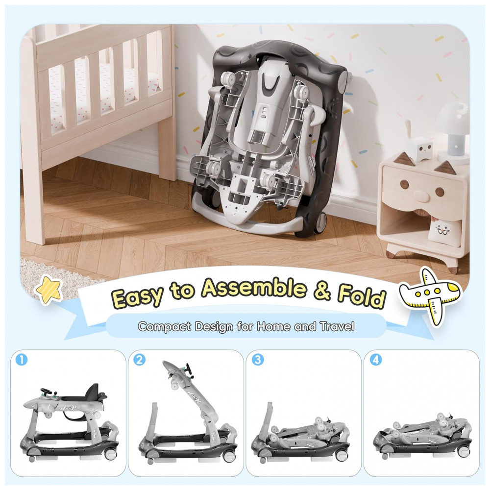Andador Xilingol 6 em 1 com Rodas de Velocidade Ajustável Altura Ajustável Assento Acolchoado Dobrável para Bebês de 6-12 Meses Empurrável.