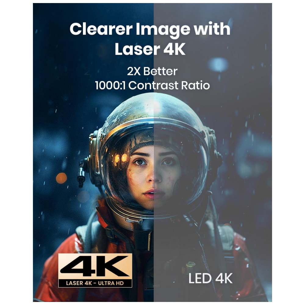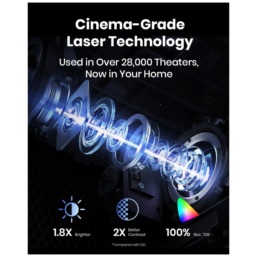 Detalhe alimentado por laser faça seus filmes brilharem com a intensidade de 2400 ISO Lumens, que é tão brilhante que você pode até assistir com as luzes acesas e, em seguida, assista a cada pixel pop em qualidade 4K UHD.