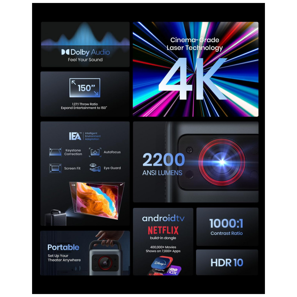 Anker Projetor Laser 4K 2400 Lumens com Bluetooth e Foco Automático Projeção de até 150 Polegadas NEBULA D23501F1 Cinza