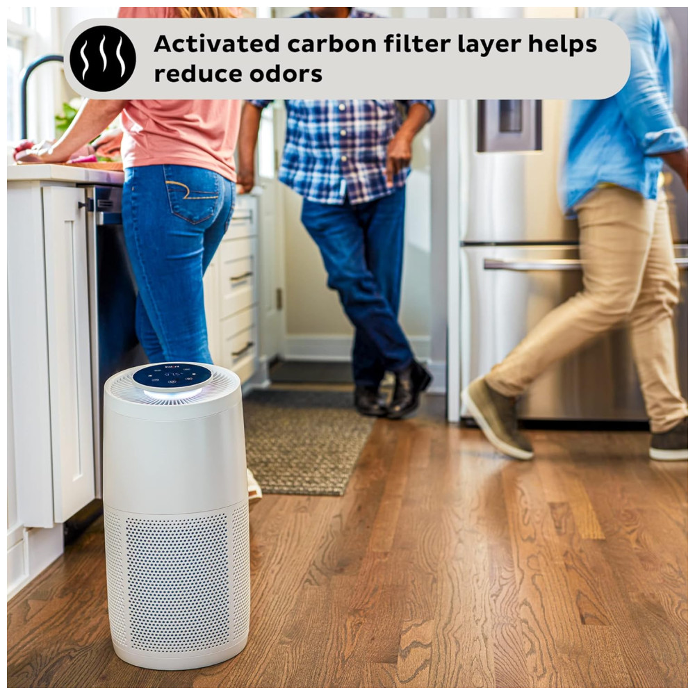 TECNOLOGIA AVANÇADA DE LIMPEZA DE AR A filtragem 3 em 1 HEPA 13, carvão ativado, revestimento mais a tecnologia de íons de plasma trabalham juntos para que você possa respirar mais facilmente.