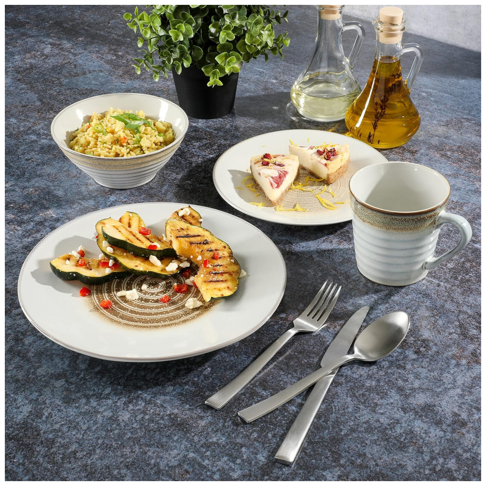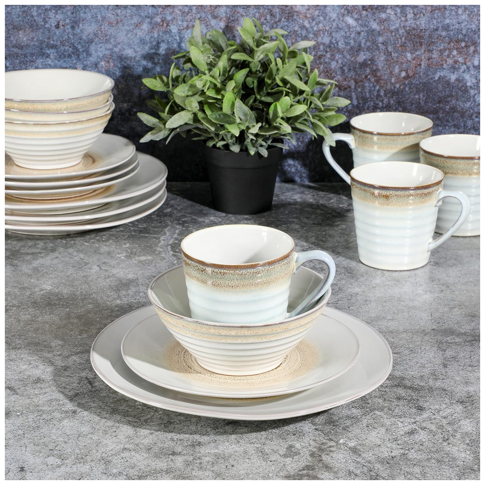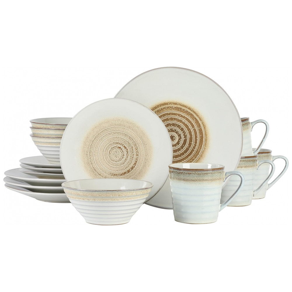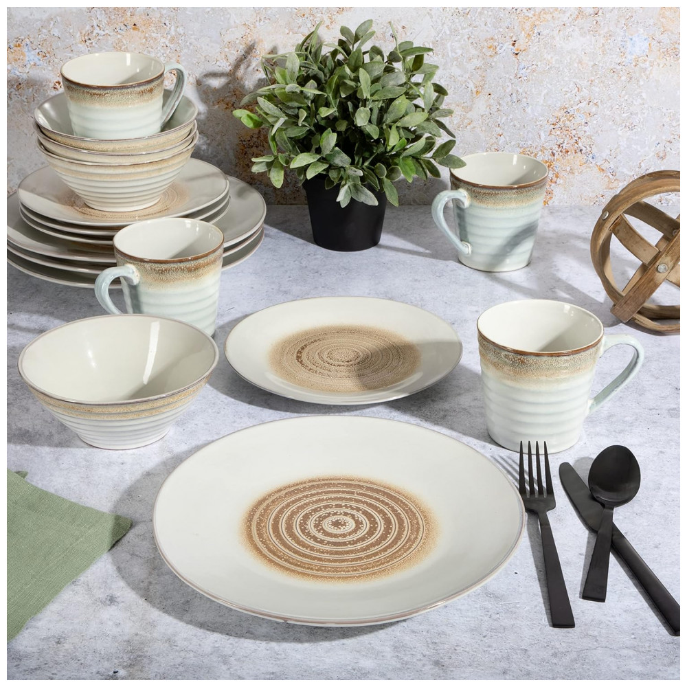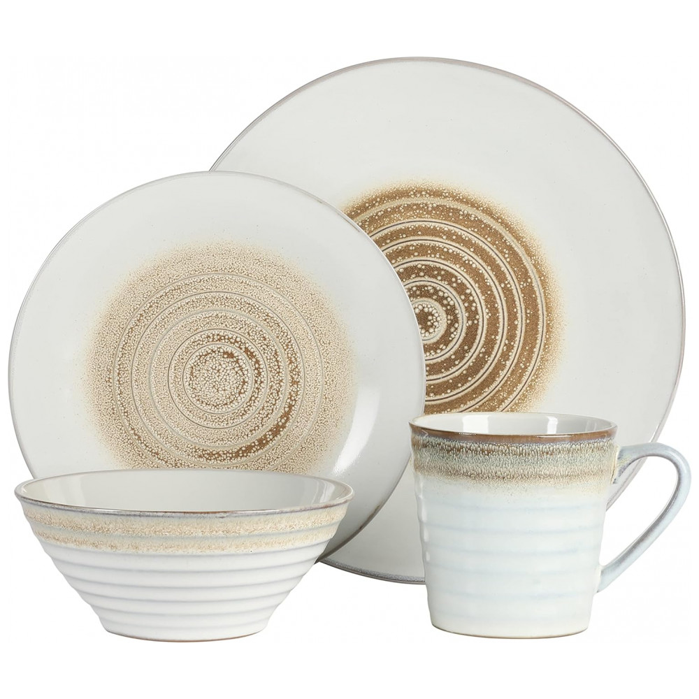 Aparelho de Jantar 16 Peças em Cerâmica com Relevo e Esmalte Reativo Gibson Elite Spiral Bege