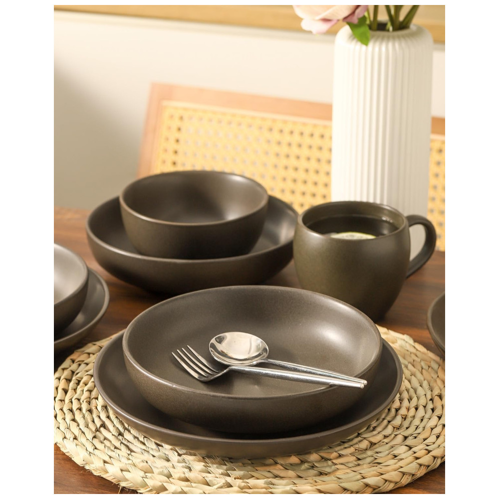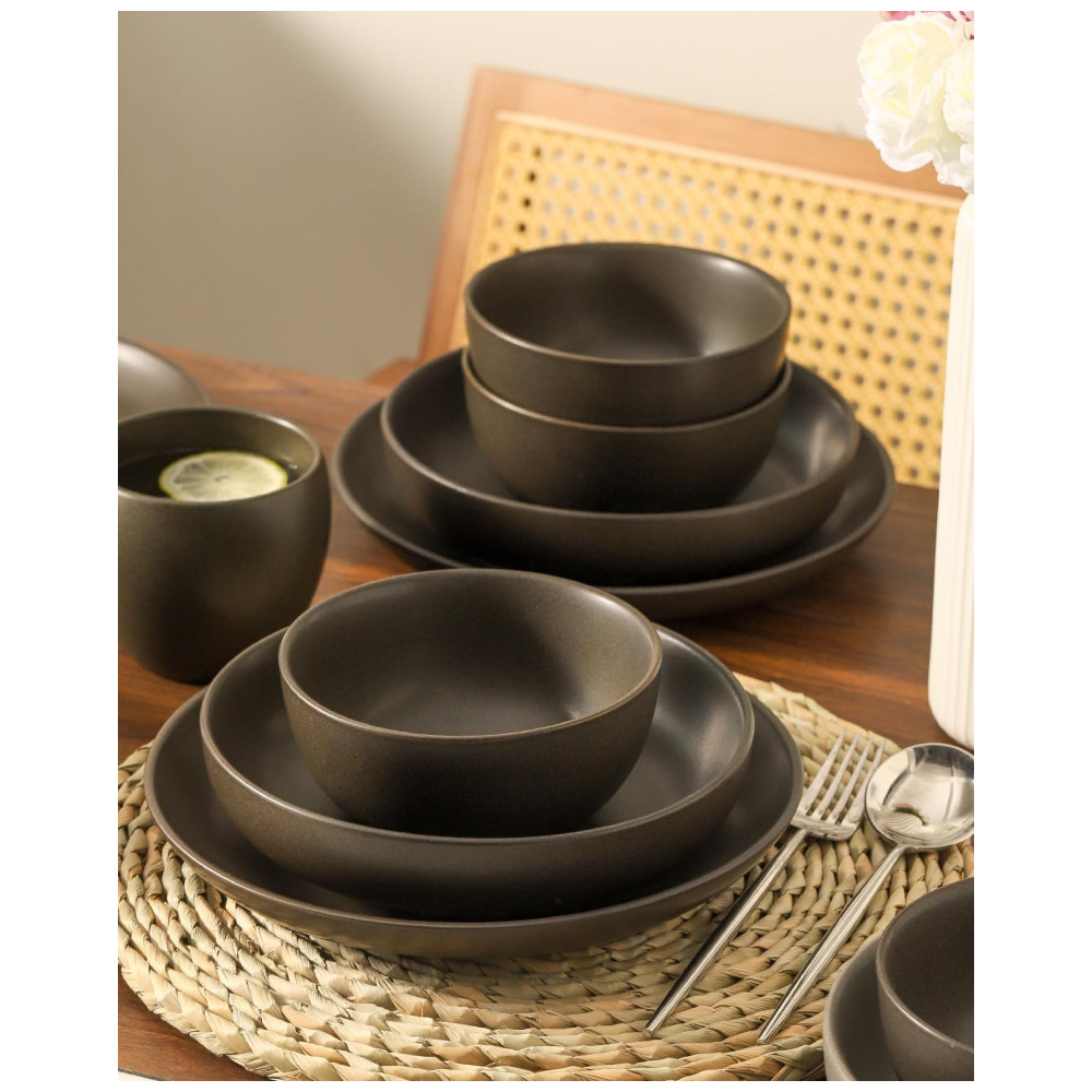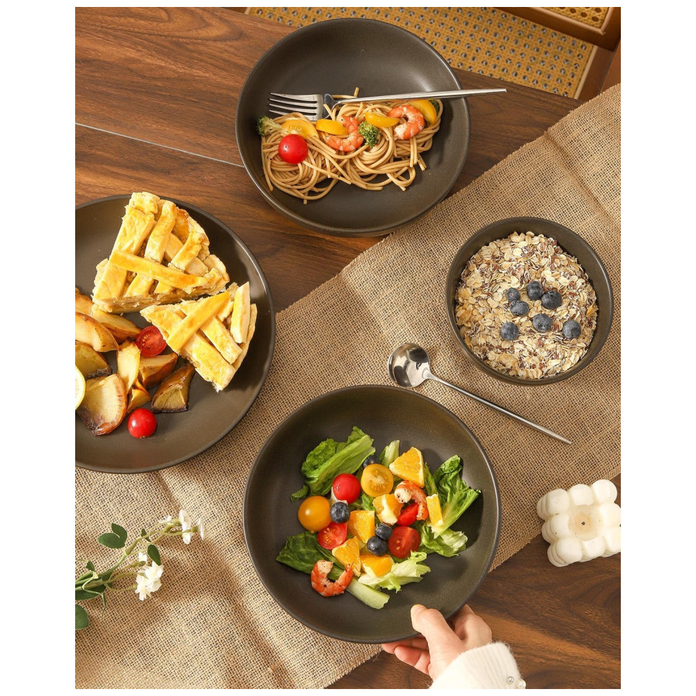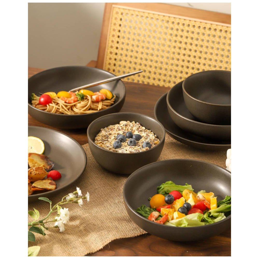 O Conjunto de Louças da Tikooere é ideal para 4 pessoas, incluindo pratos de jantar , tigelas de massa , canecas de café e tigelas de sopa. Projetado para refeições modernas, este conjunto versátil é perfeito para servir saladas, massas, sopas, café e sobremesas. Seja para refeições casuais ou elegantes jantares, ele combina funcionalidade com estilo atemporal. Com um acabamento fosco distinto, este conjunto preto traz um visual contemporâneo refinado para a mesa. O material de alta densidade oferece durabilidade superior, resistência a lascas e retenção de calor excepcional. Empilháveis para economizar espaço, esses pratos e tigelas de cerâmica são uma escolha elegante e funcional para todas as ocasiões. Eleva qualquer experiência de jantar, sendo um presente perfeito para diversas celebrações.
