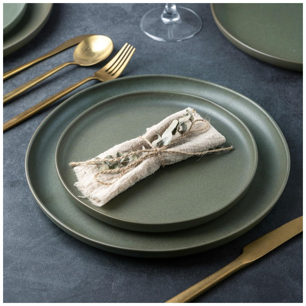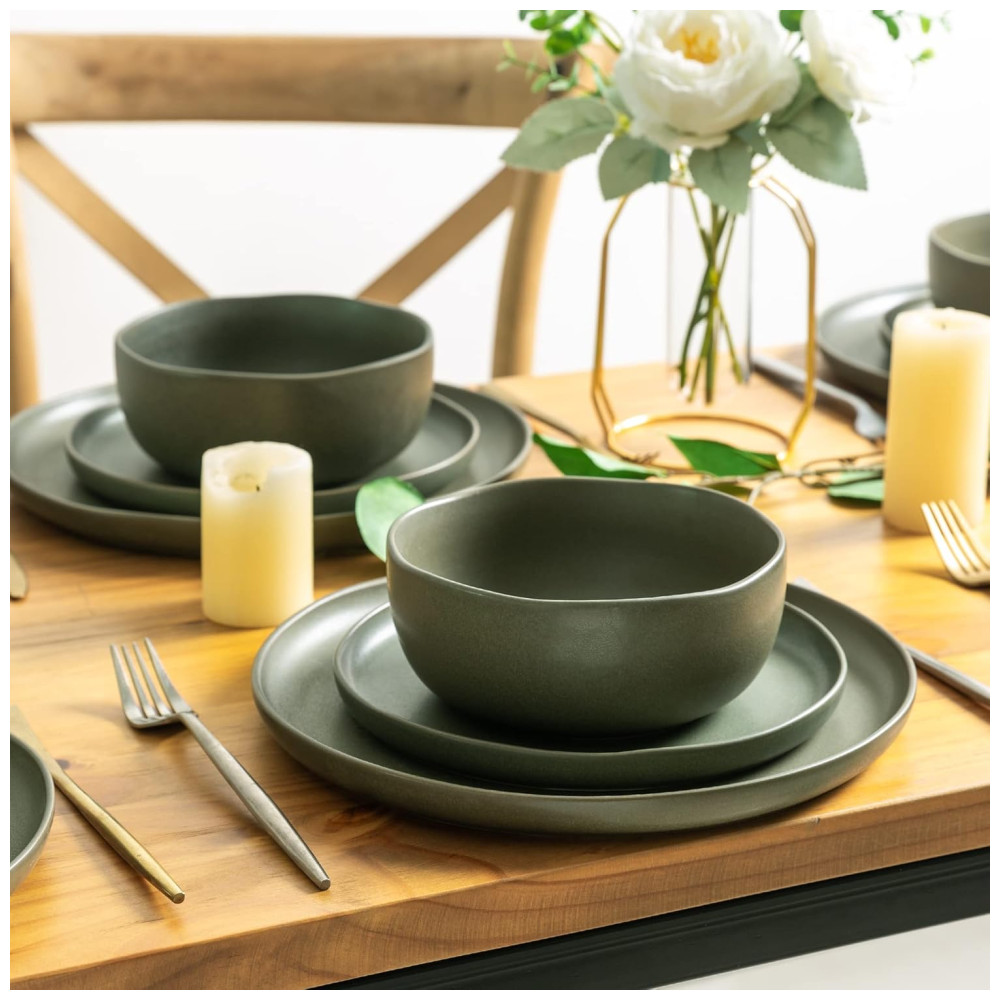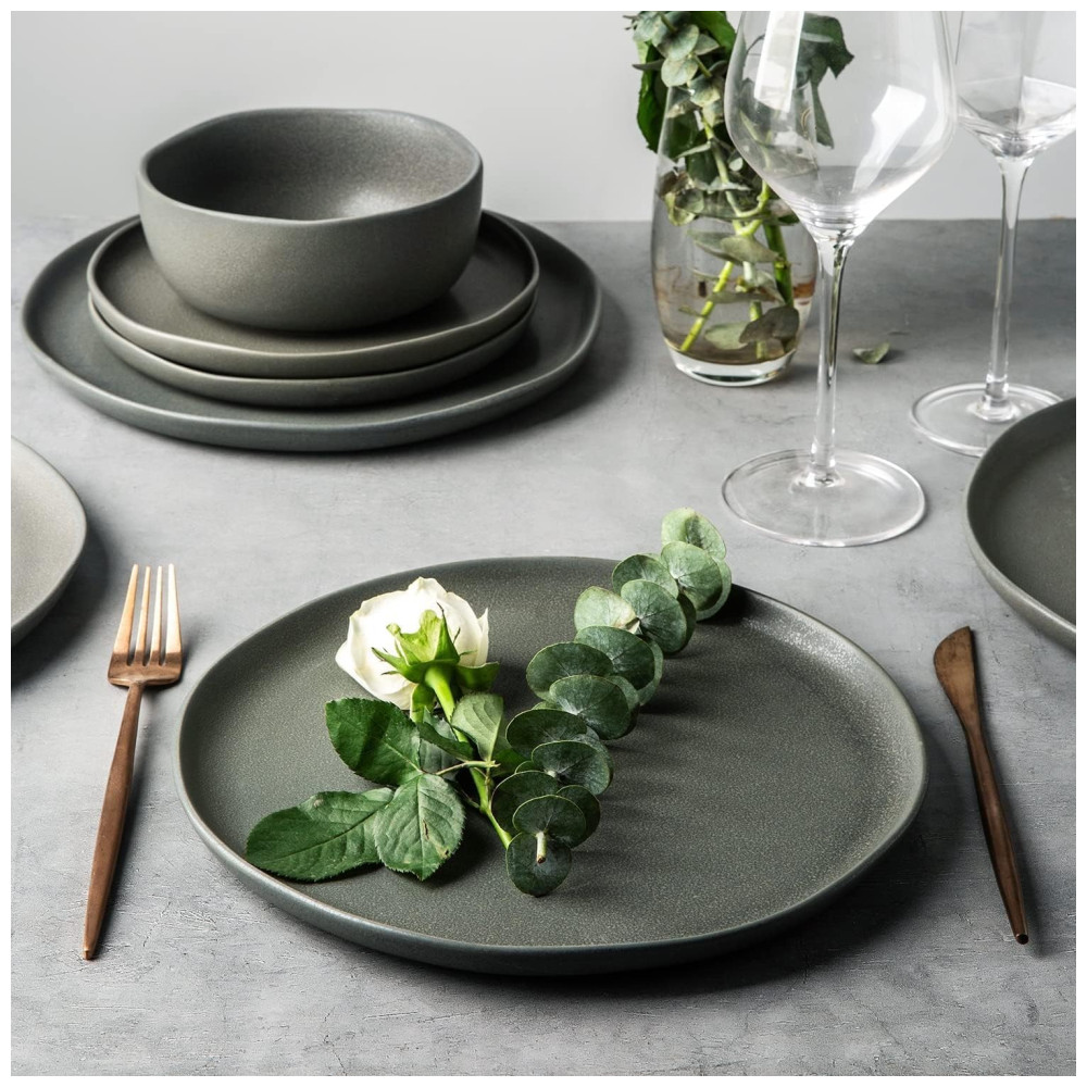 O conjunto de louça da marca AmorArc é fabricado em stoneware de alta durabilidade, com acabamento mate e borda ondulada única, projetada por artistas profissionais para conferir sofisticação às refeições diárias e ocasiões especiais. Cada peça apresenta variações naturais de tonalidade no esmalte reativo, que é biodegradável e livre de chumbo, cádmio e bisfenol A.