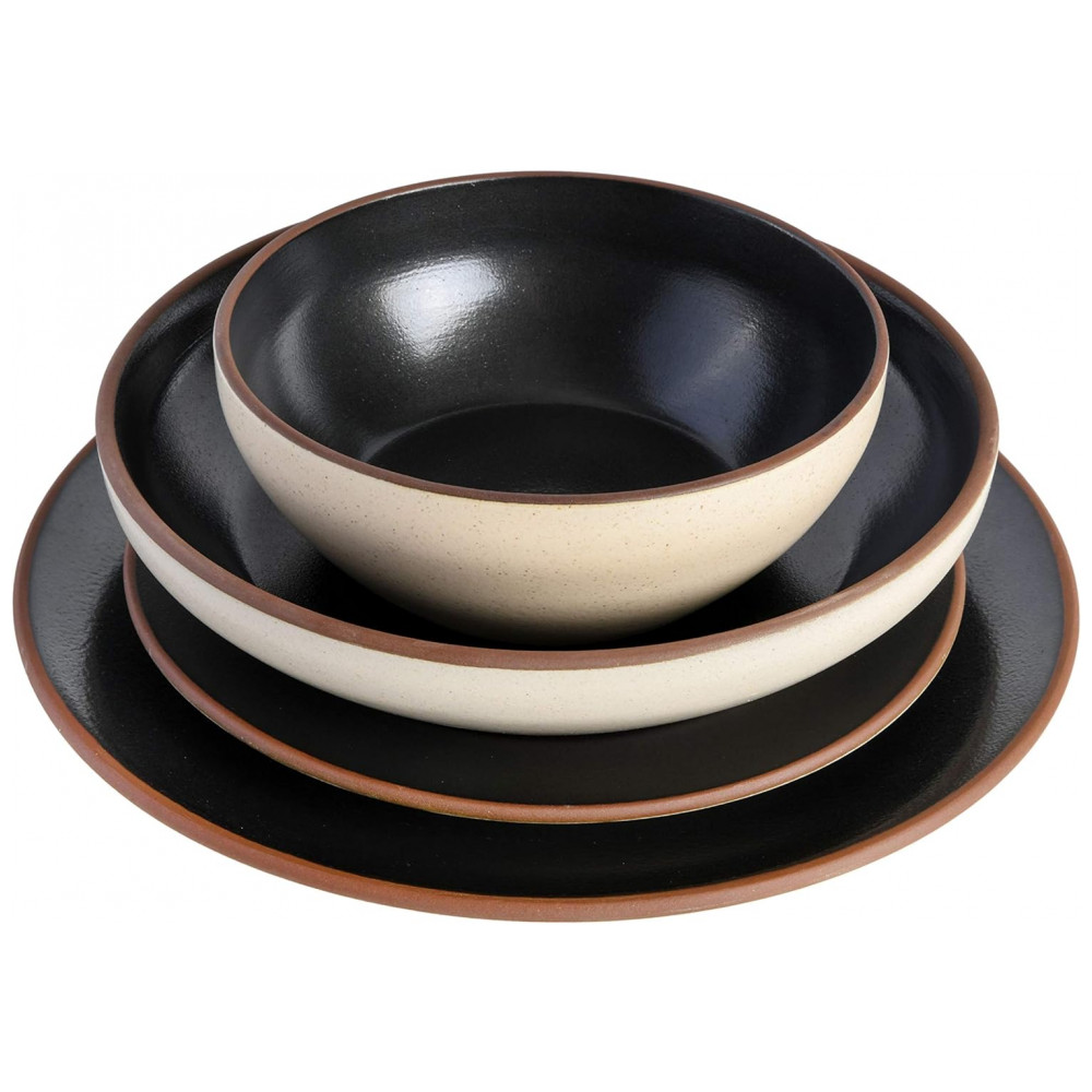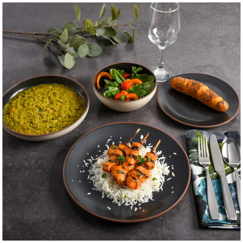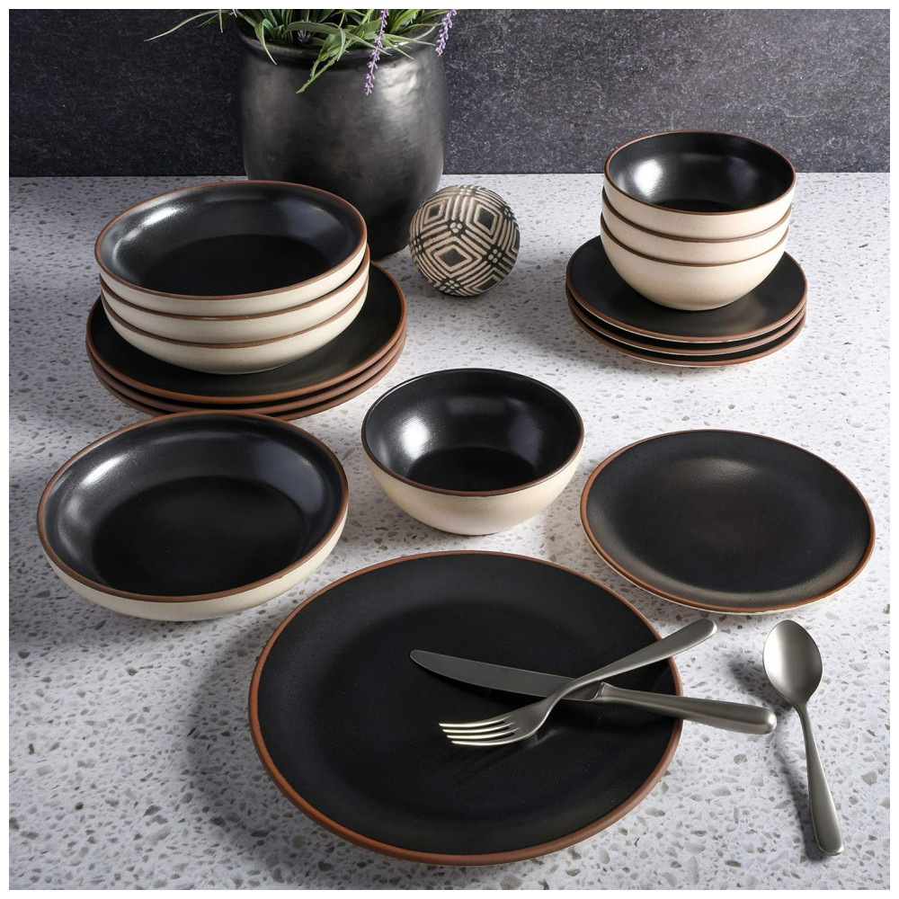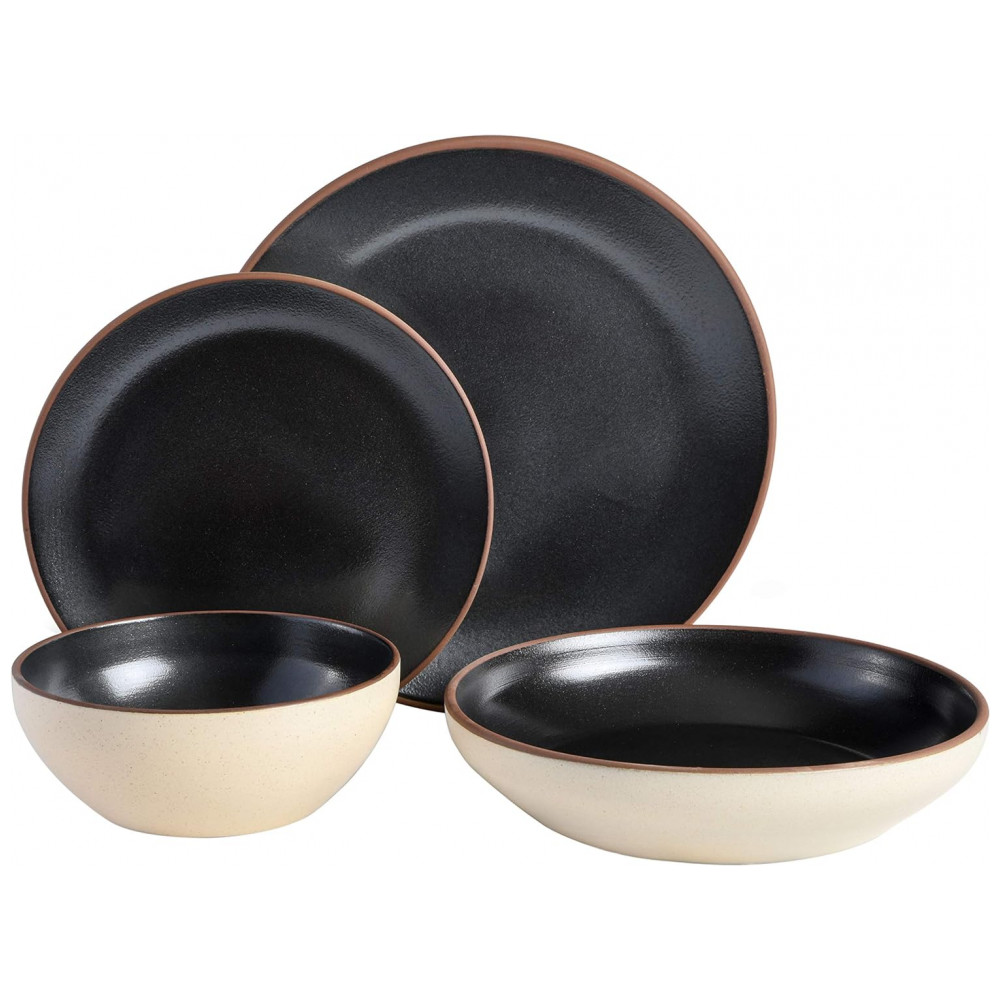 Aparelho de Jantar Clássico com 16 Peças em Cerâmica Serve 4 Pessoas Gibson Elite Contempo Preto