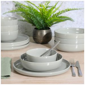 Aparelho de Jantar com 12 Peças de Porcelana Ideal para 4 Pessoas Gibson Home Oslo Cinza