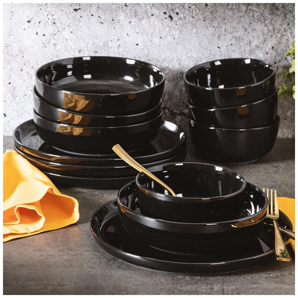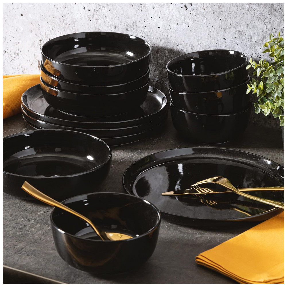 Aparelho de Jantar com 12 Peças de Porcelana Ideal para 4 Pessoas Gibson Home Oslo Preto