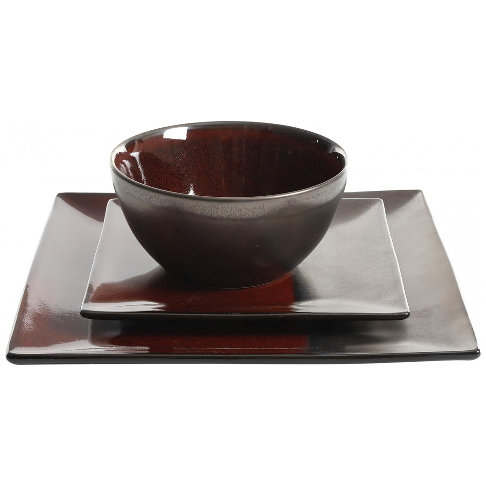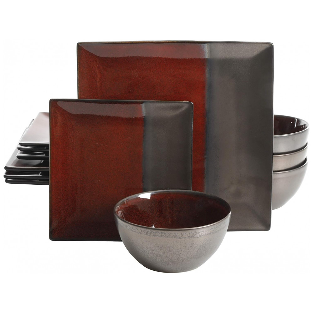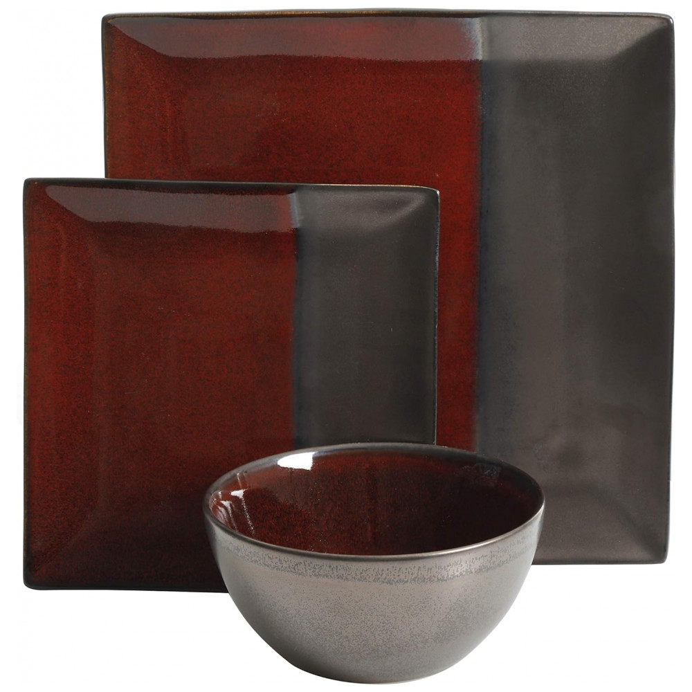Aparelho de Jantar com 12 Peças em Cerâmica e Esmalte Reativo Gibson Elite Decadence Vermelho